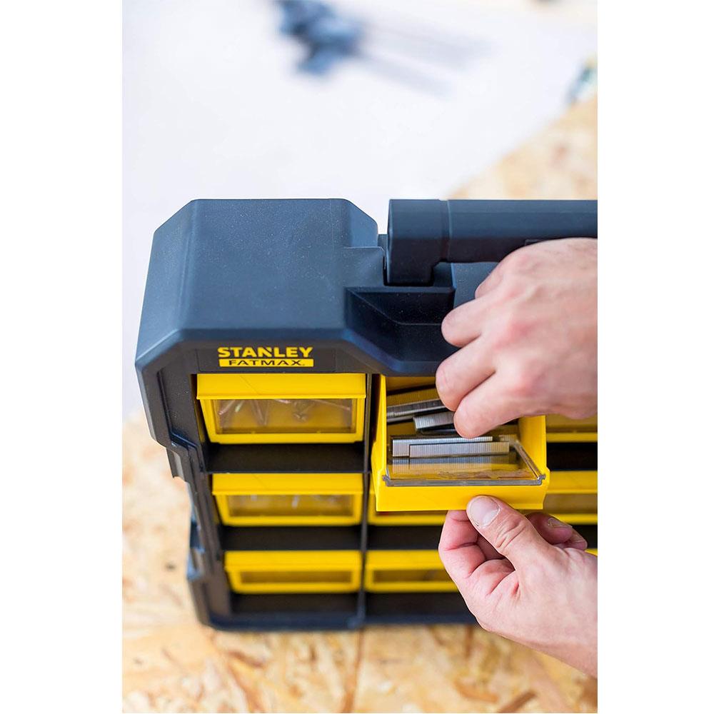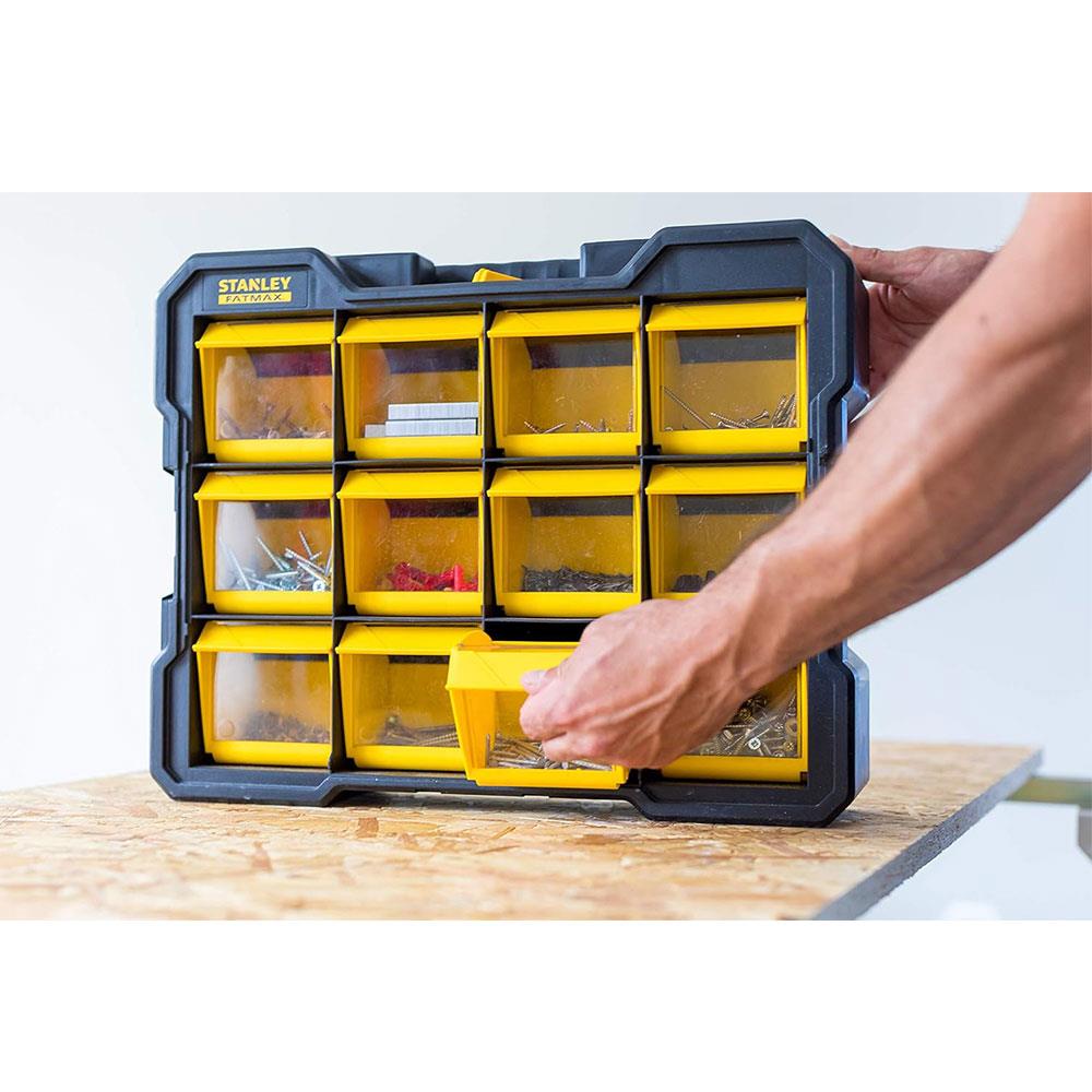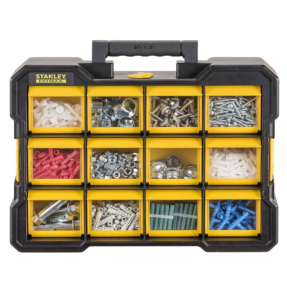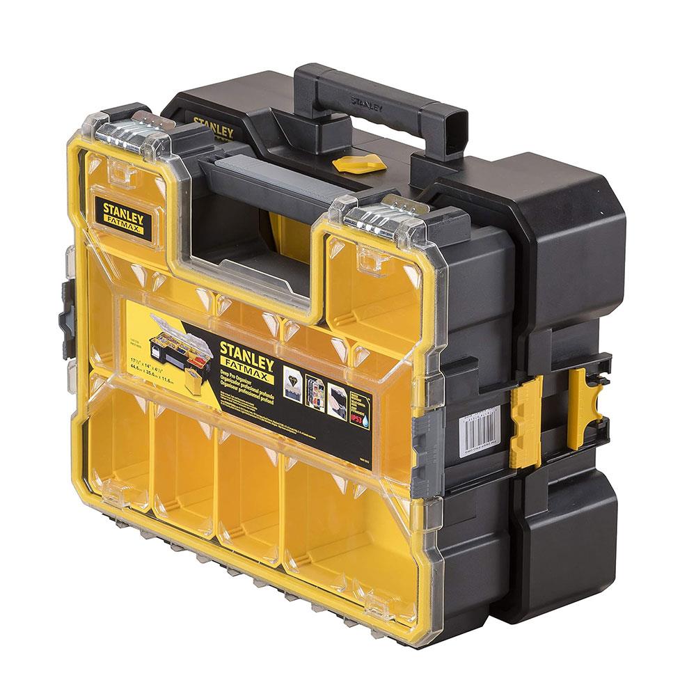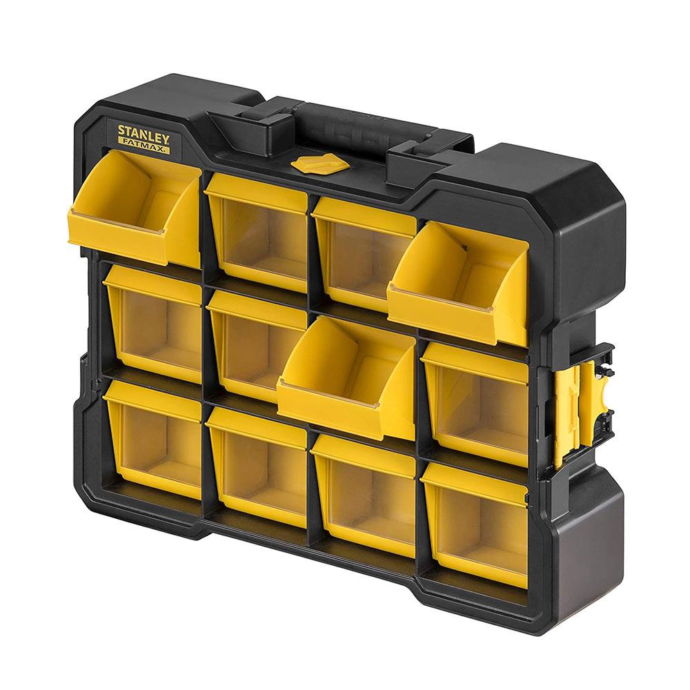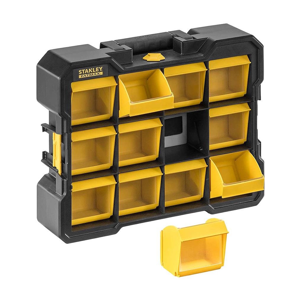 Stanley FatMax Flip Bin Deep Pro Organiser 12 Removable Compartments – Black/Yellow