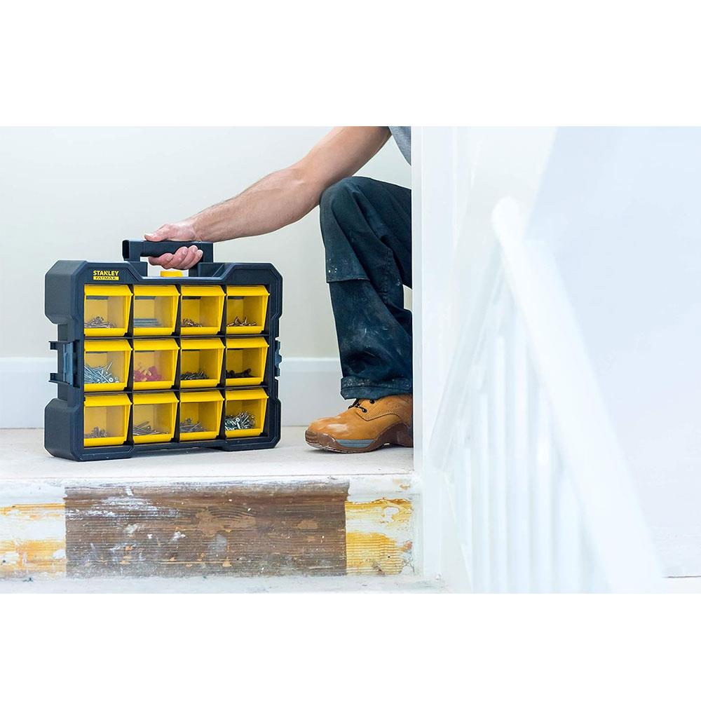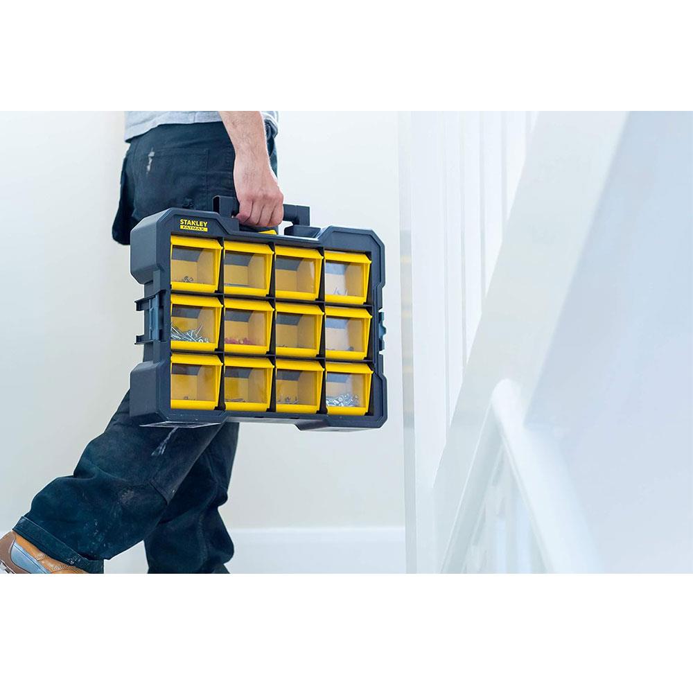 Stanley FatMax Flip Bin Deep Pro Organiser 12 Removable Compartments - Black/Yellow - Image 11