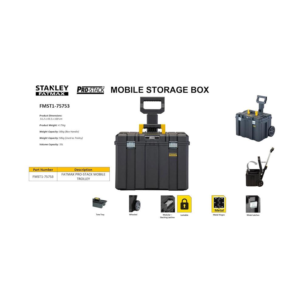 Stanley FatMax PRO-STACK Mobile Storage Box Max Capacity 50kg 55 Litres 1-75-753- Black