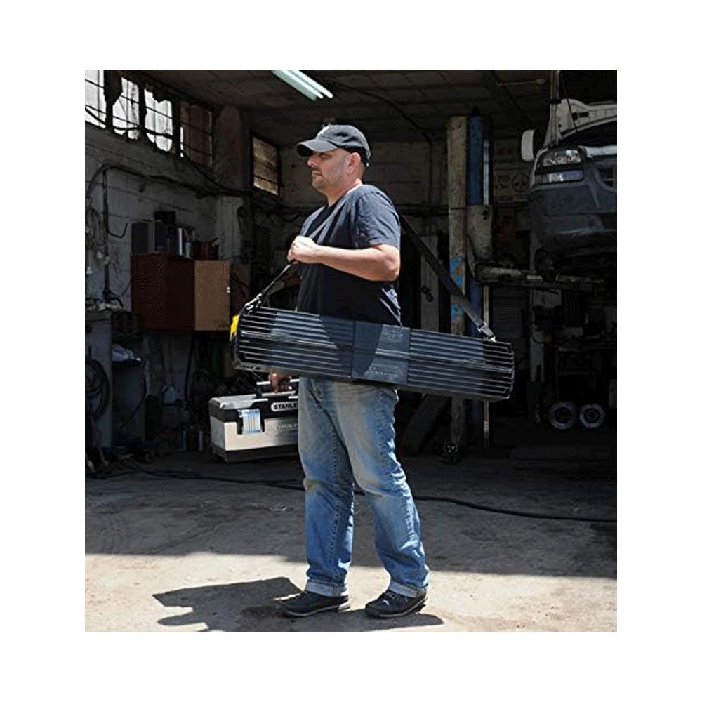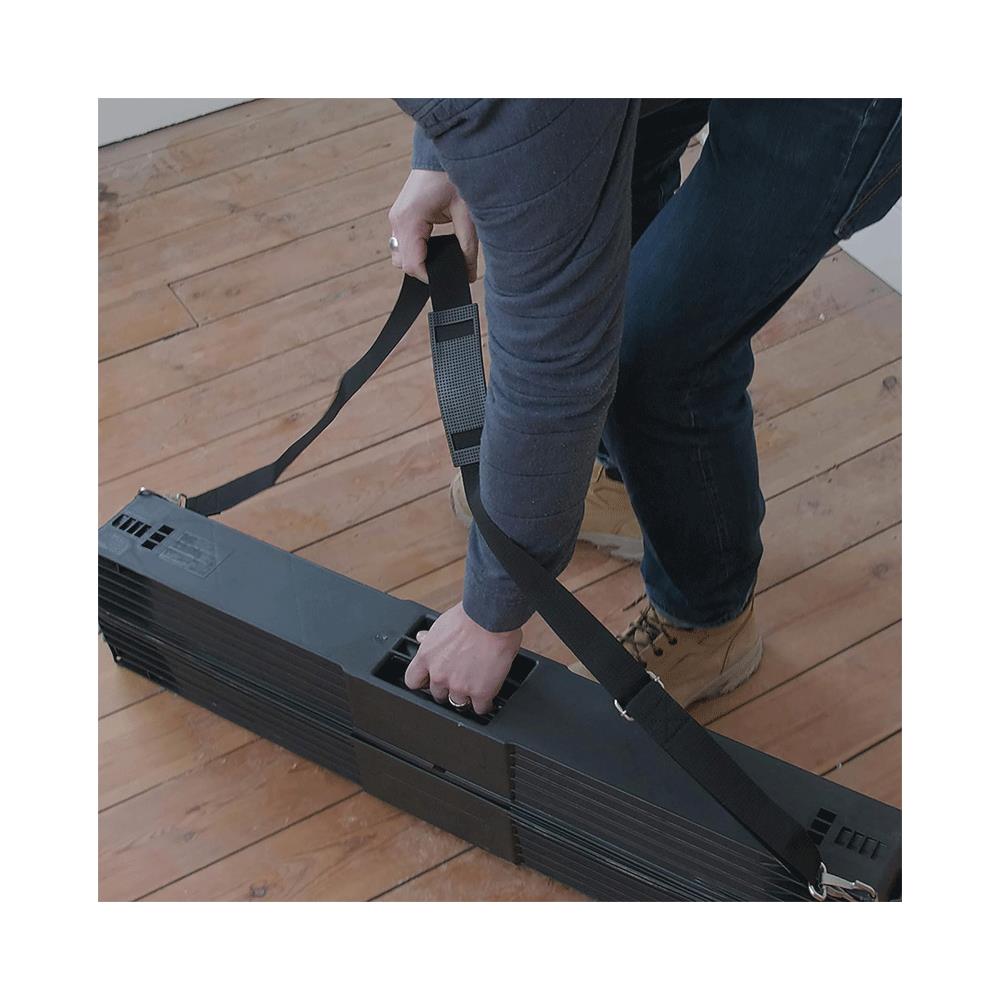 The STANLEY Folding Metal Sawhorse (Pair) provides a quick and convenient makeshift workbench for cutting materials, or a convenient flat surface to work from, for loads up to 340kg. This strong and stable sawhorse can be folded in seconds for storage, clipped together and carried as a pair using integral carry-handles or removable shoulder strap for easy transportation to and from the jobsite.