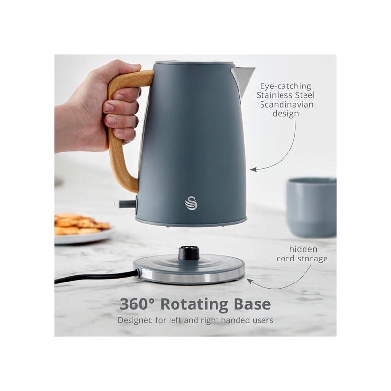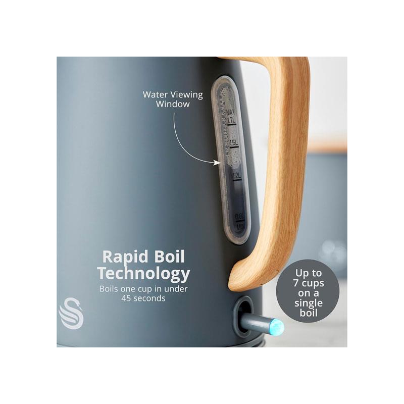 Swan Fjord 1.7L Electric Jug Kettle with Fast Boil Technology & Wood Effect Handle Grey - Image 3