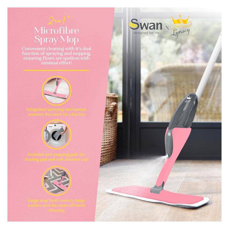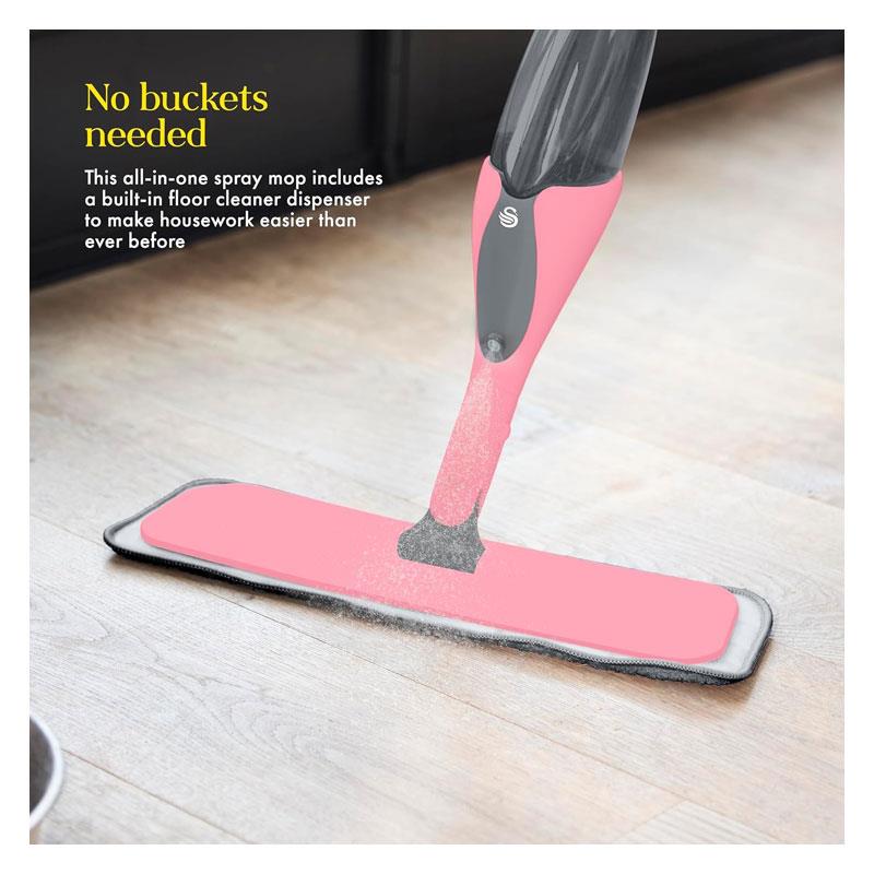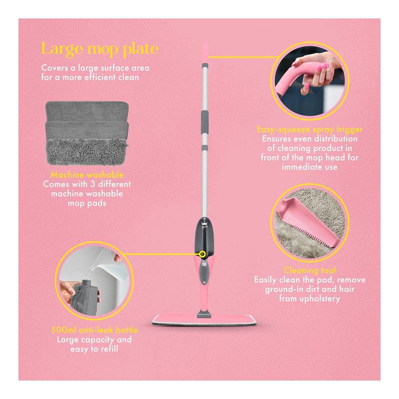 Swan Lynsey Queen of Clean Spray Mop – Pink | 3 Mop Pads, 500ml Anti-Leak Bottle