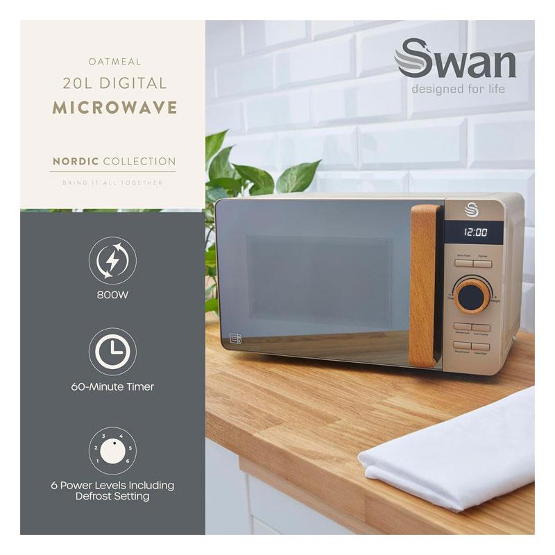Swan Nordic Digital Microwave 20L Oatmeal White | 800W Countertop Microwave with 6 Power Settings, 60-Min Timer & Defrost Function – Buy Online UK