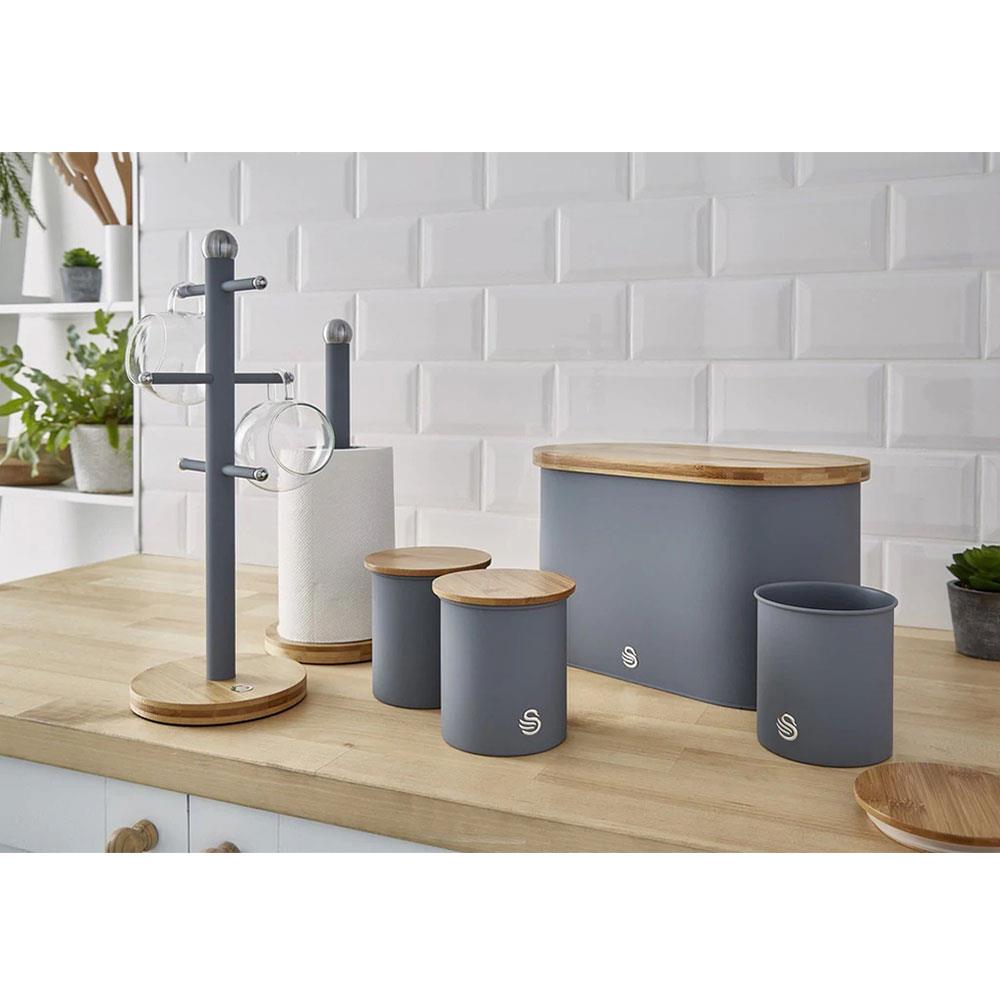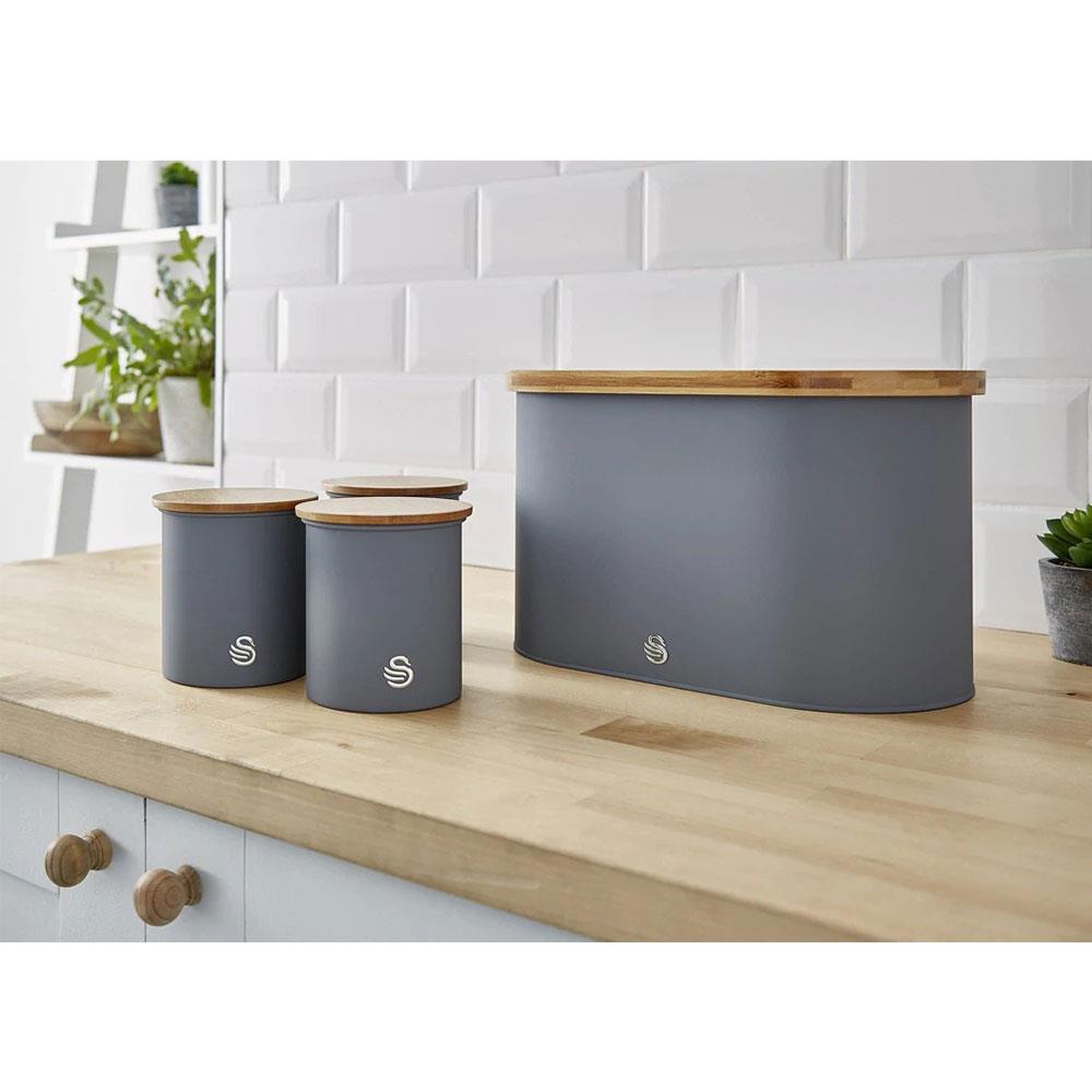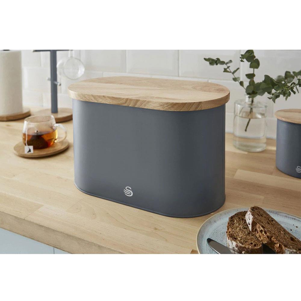Swan Nordic Oval Bread Bin With Bamboo Cutting Board Lid Soft Touch Finish – Slate Grey