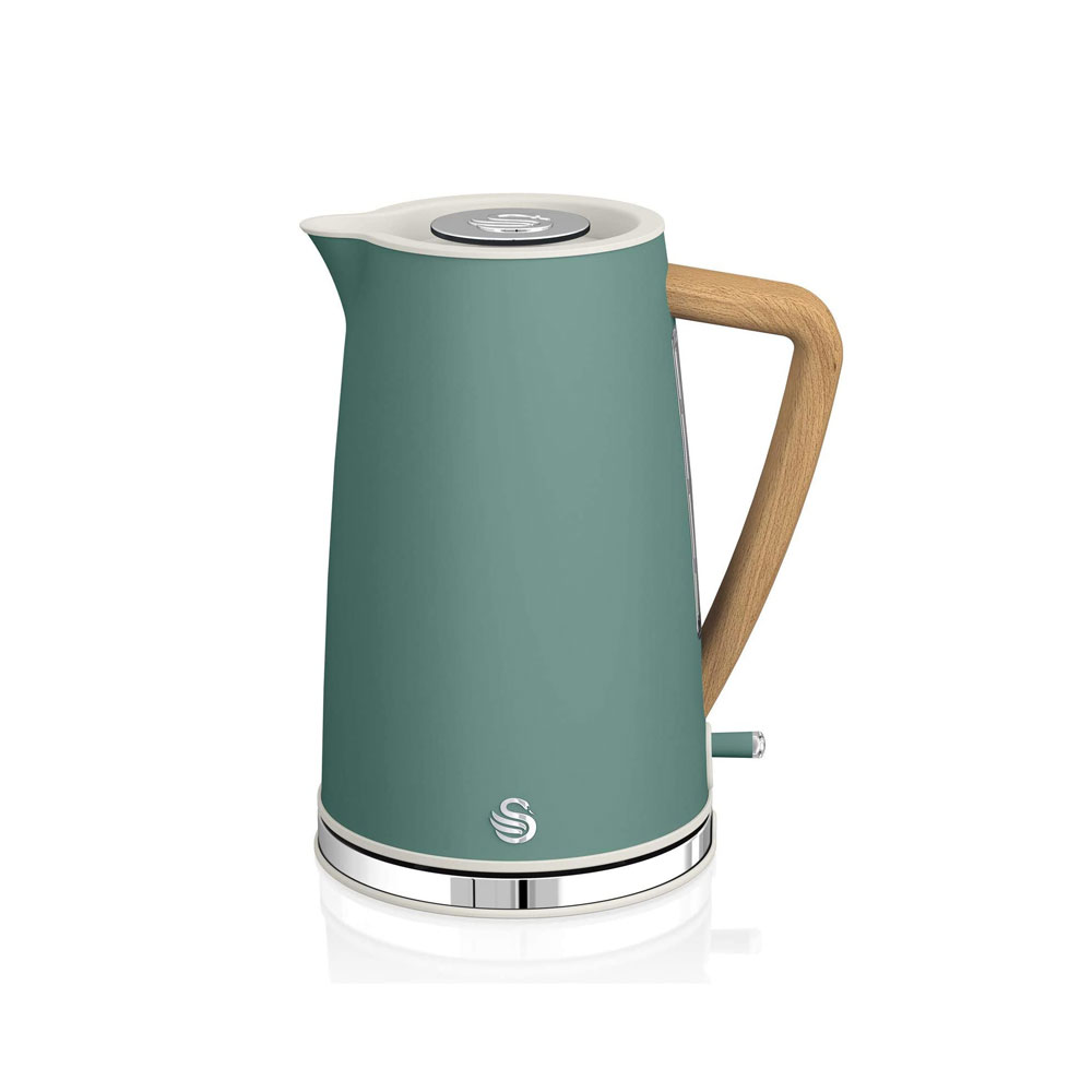 Swan SK14610GREN Nordic Rapid Boil Jug Kettle Stainless Steel Wood Effect Handle Soft Touch Housing And Matt Finish 3000 W 1.7 Litre – Pine Green