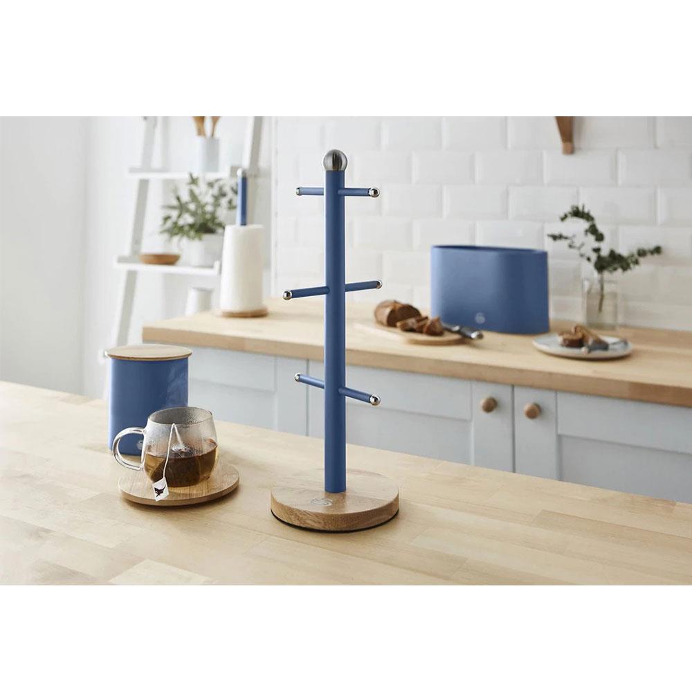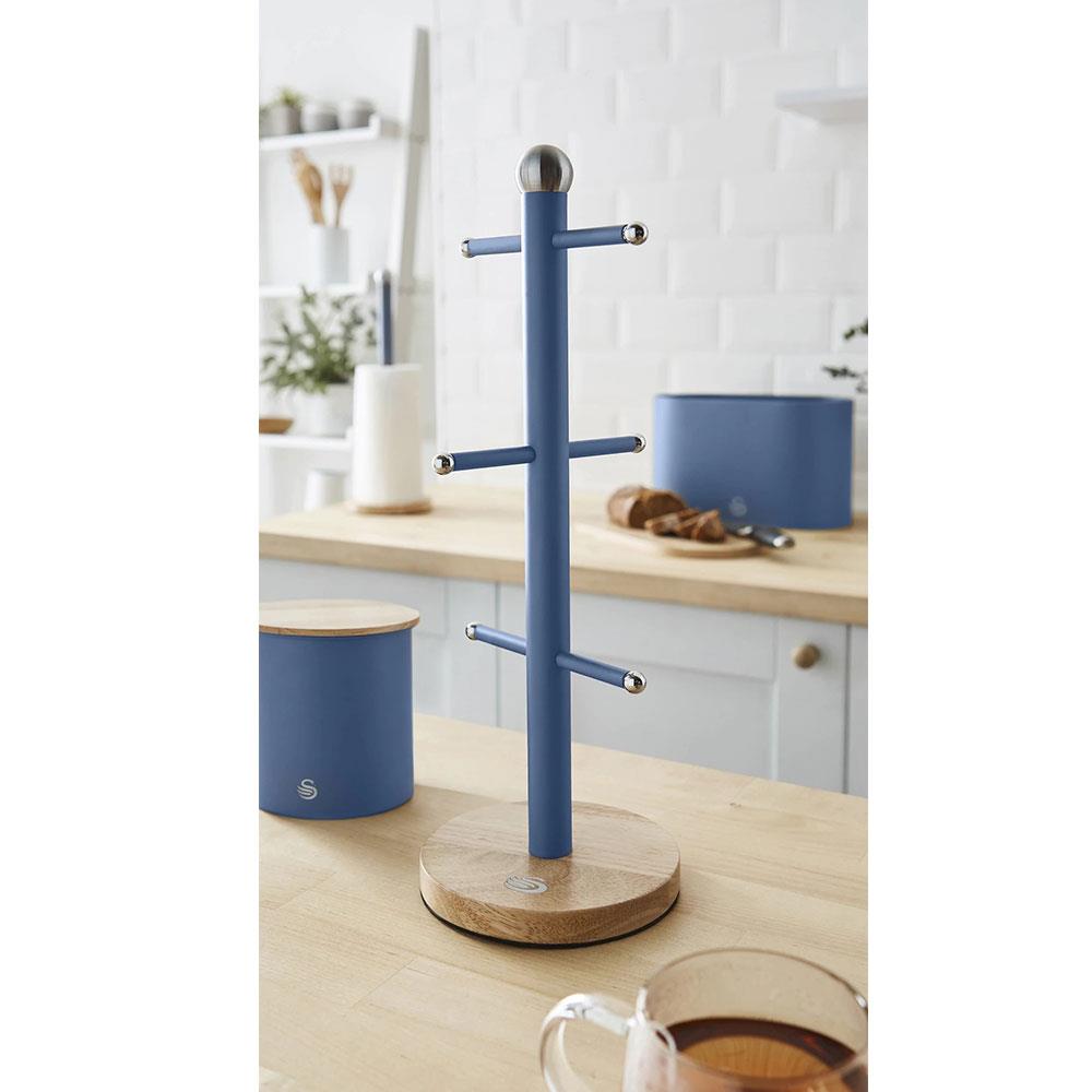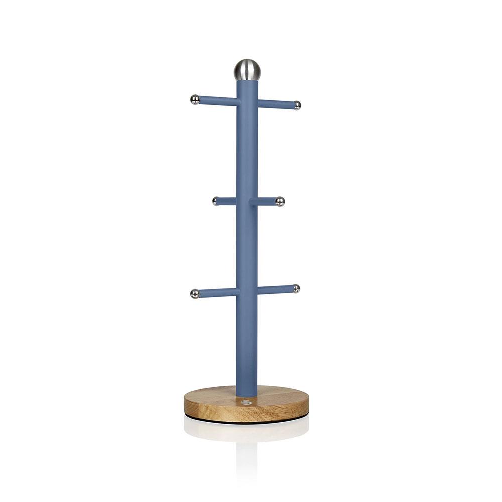 Swan Nordic Six Branch Mug Tree With Bamboo Base Wooden Effect Steel – Blue