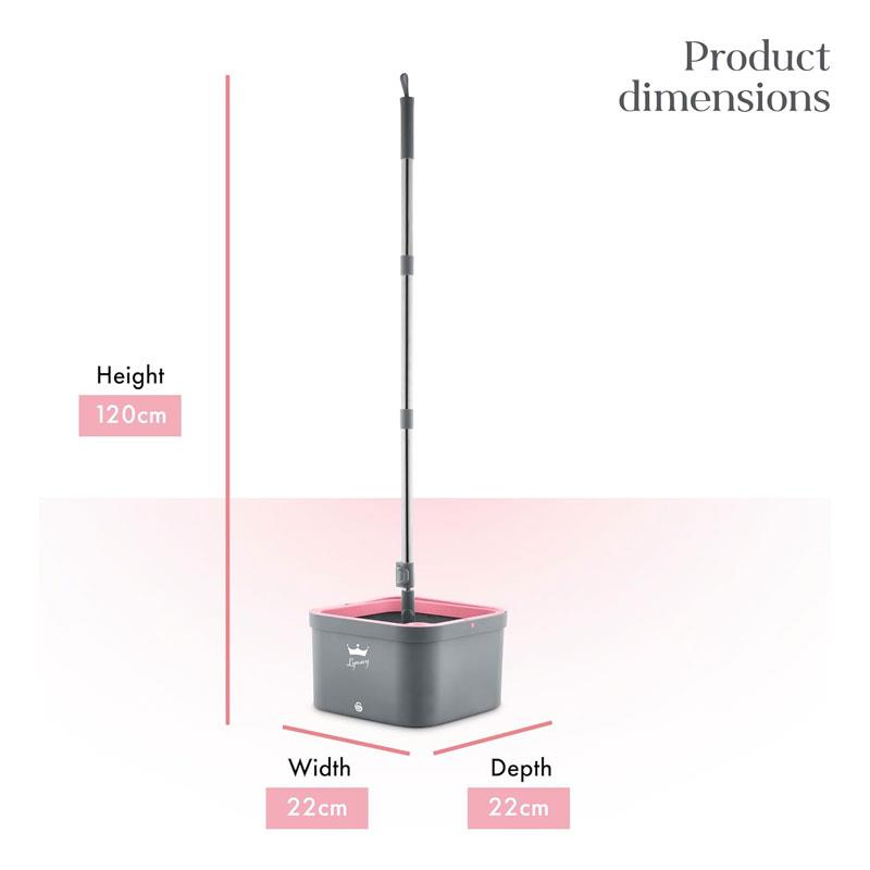 Swan x Lynsey Turbo Spin Mop 360° Rinse & Wring 2.5L Dual Tanks Microfibre Heads Pink/Grey - Image 5