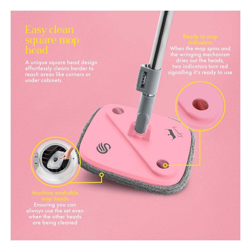 Swan x Lynsey Turbo Spin Mop 360° Rinse & Wring 2.5L Dual Tanks Microfibre Heads Pink/Grey