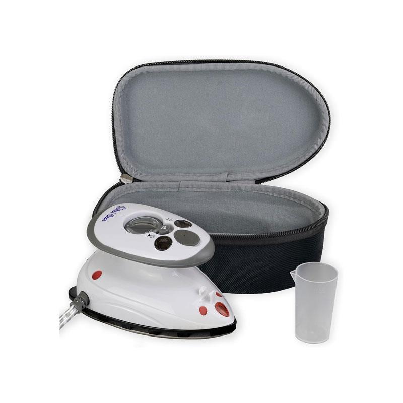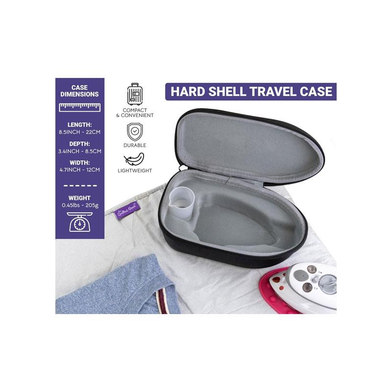 To protect the iron during transport, it comes with a durable hard shell carry case — ensuring safety, portability, and organised packing. Whether you need a travel iron for clothes or a craft iron for quilting and sewing, this compact steamer delivers power, convenience, and versatility in one stylish black design.