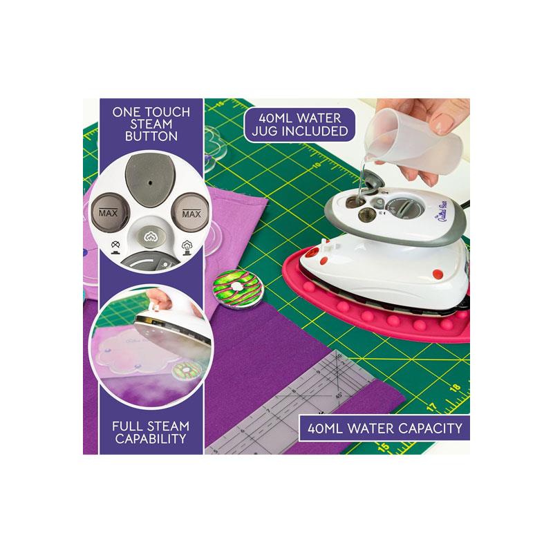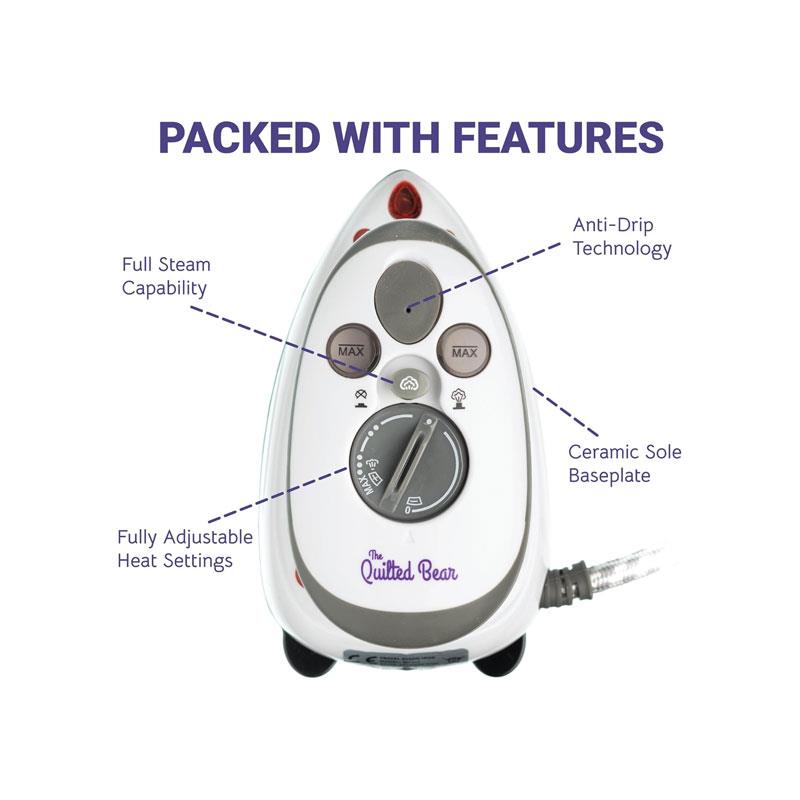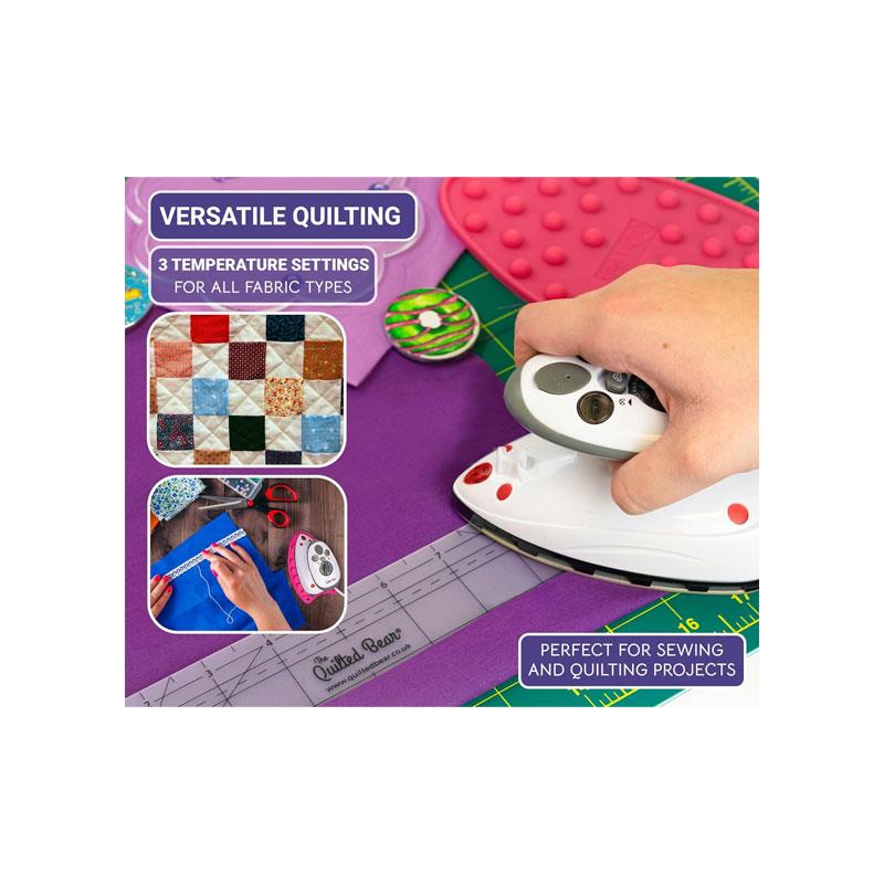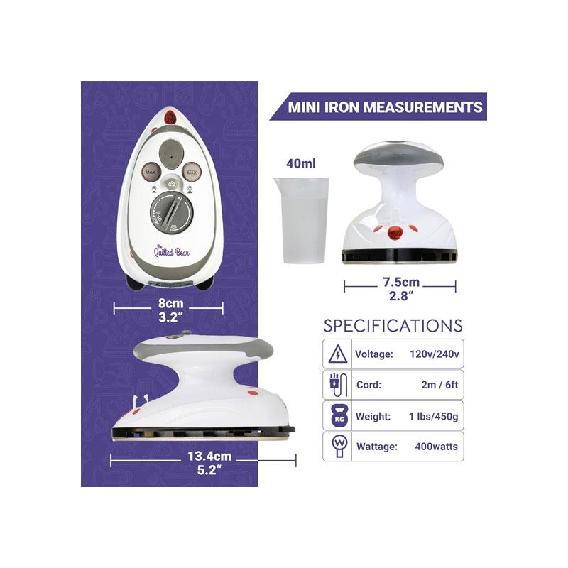 Experience smooth, crease-free clothes and precise crafting results with The Quilted Bear Mini Steam Iron, designed for travel, sewing, quilting, and everyday touch-ups. Built with a high-quality ceramic soleplate, this compact iron glides effortlessly across fabrics while delivering quick, even heating for reliable wrinkle removal.
