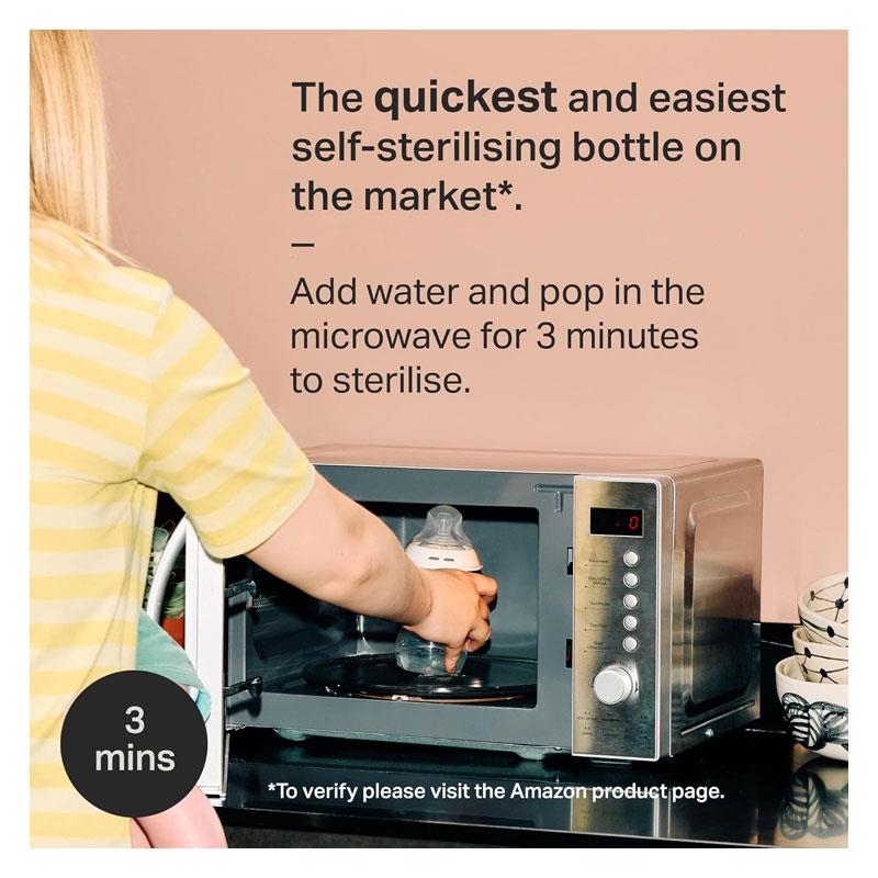 - Self-Sterilising Convenience: Simply pop the bottle into the microwave for three minutes — no separate steriliser needed, saving time for busy parents.