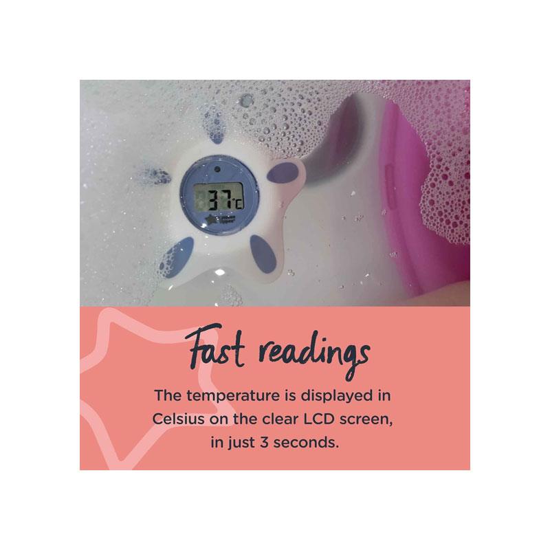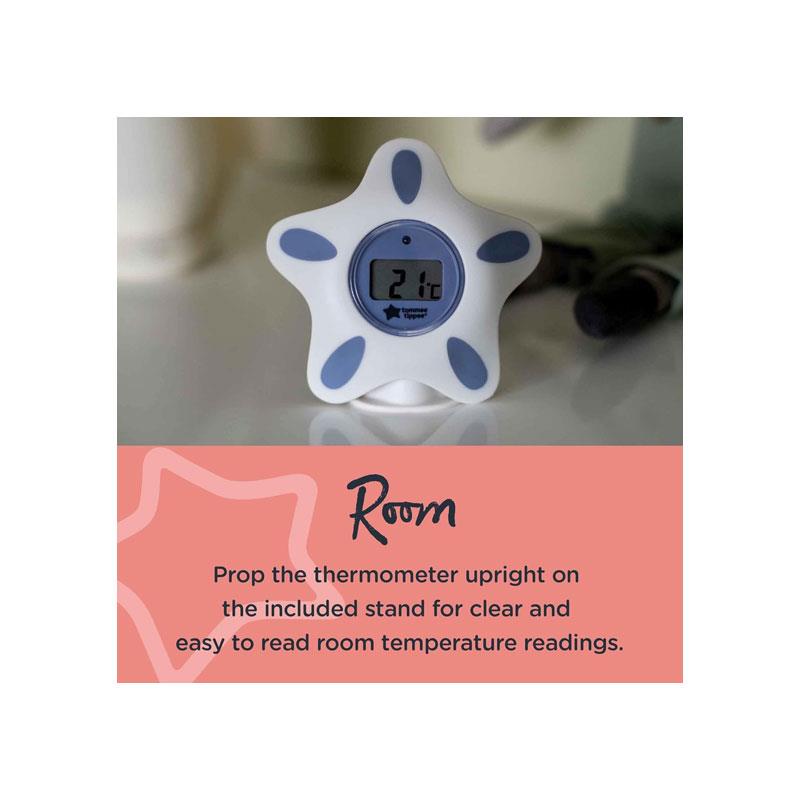 The Tommee Tippee Closer to Nature Digital Bath and Room Thermometer provides fast, reliable temperature readings to help keep your baby safe and comfortable. Designed in the iconic Tommee Tippee star shape, this dual-use thermometer floats in bath water and also stands upright to measure room temperature.