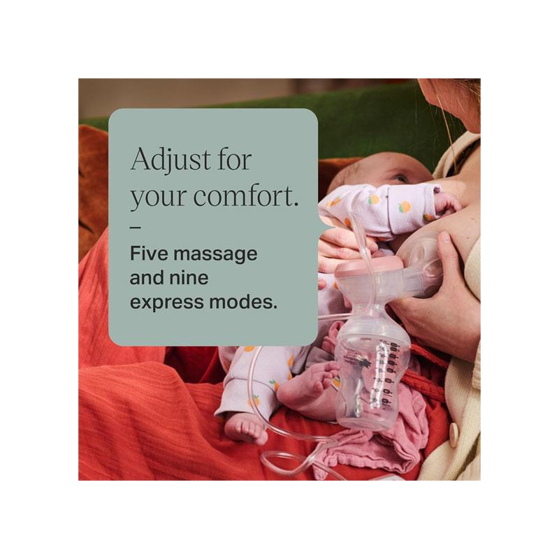 The Tommee Tippee Made for Me Single Electric Breast Pump is thoughtfully designed to make expressing breast milk easier, more comfortable and convenient for mothers. Featuring 5 soothing massage modes and 9 adjustable express settings, this pump lets you personalise your pumping routine to your comfort level.