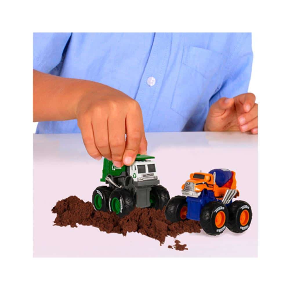 • Includes a Garbage Truck and a Cement Mixer