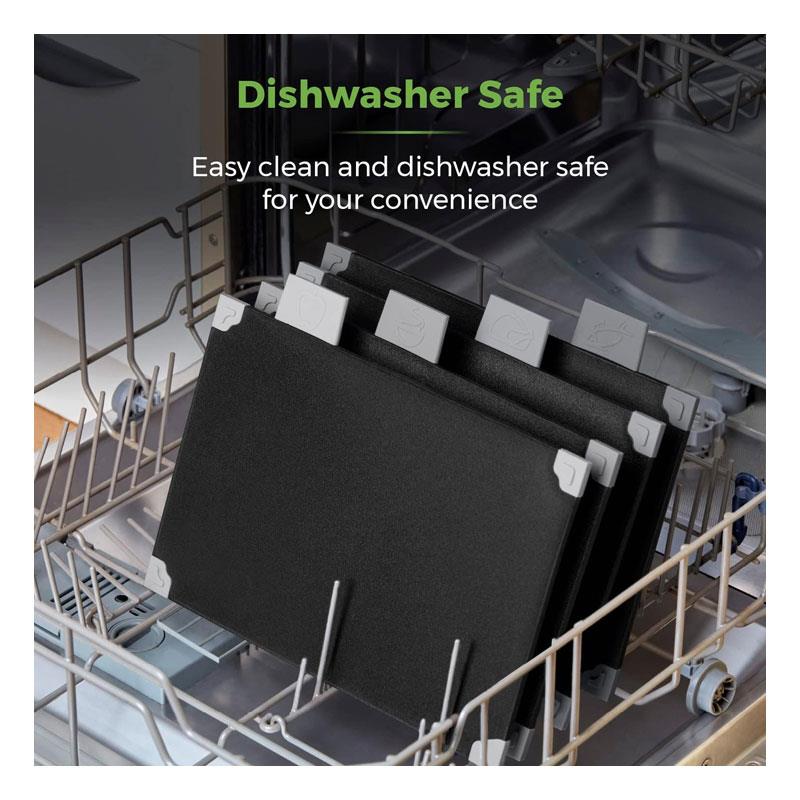 Crafted from high-quality plastic, these boards provide a knife-friendly surface that protects your blades while offering durability. When mealtime is over, simply pop the boards into the dishwasher for quick and hassle-free cleaning.
