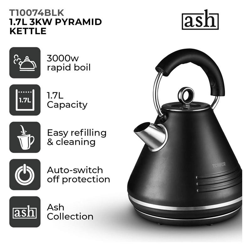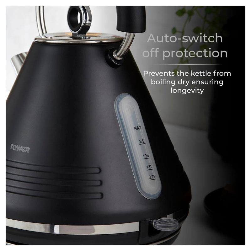 Tower Ash Matte Pyramid Kettle Chrome Accents 3000W 1.7 Litres - Black And Chrome - Image 4
