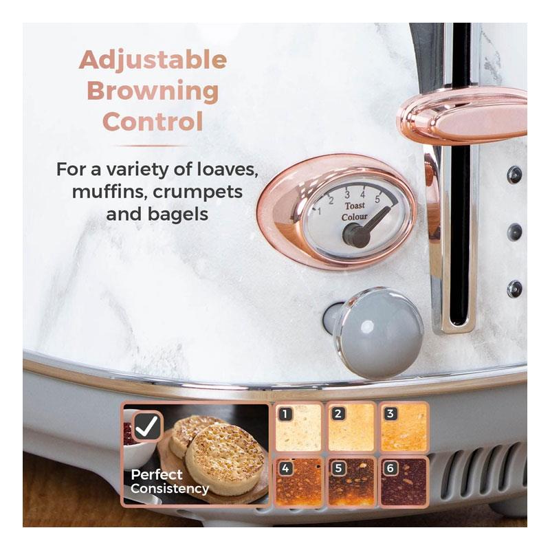 Tower Bottega 2 Slice Toaster Stainless Steel 850W White Marble And Rose Gold - Image 3