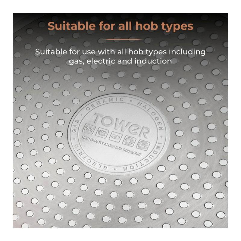 • Hob Compatible – Including Induction Built with a bonded steel base, these pans are suitable for all hob types, including induction, gas, ceramic, and electric.