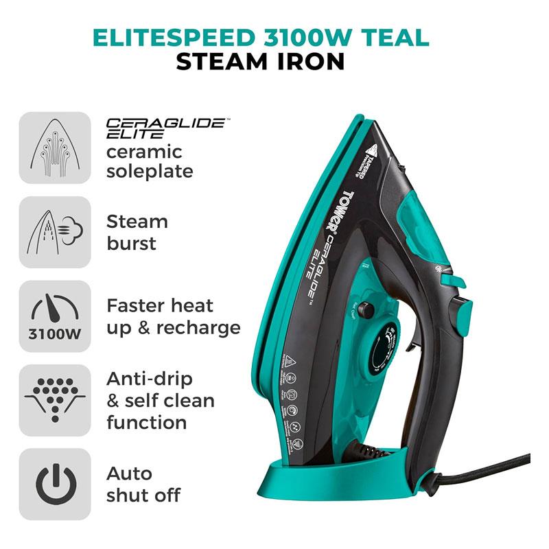 Tower Ceraglide Elite Steam Iron 3100W – Black & Teal