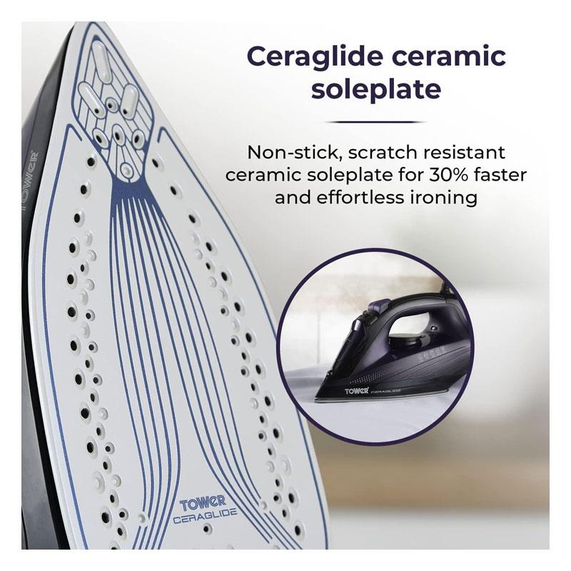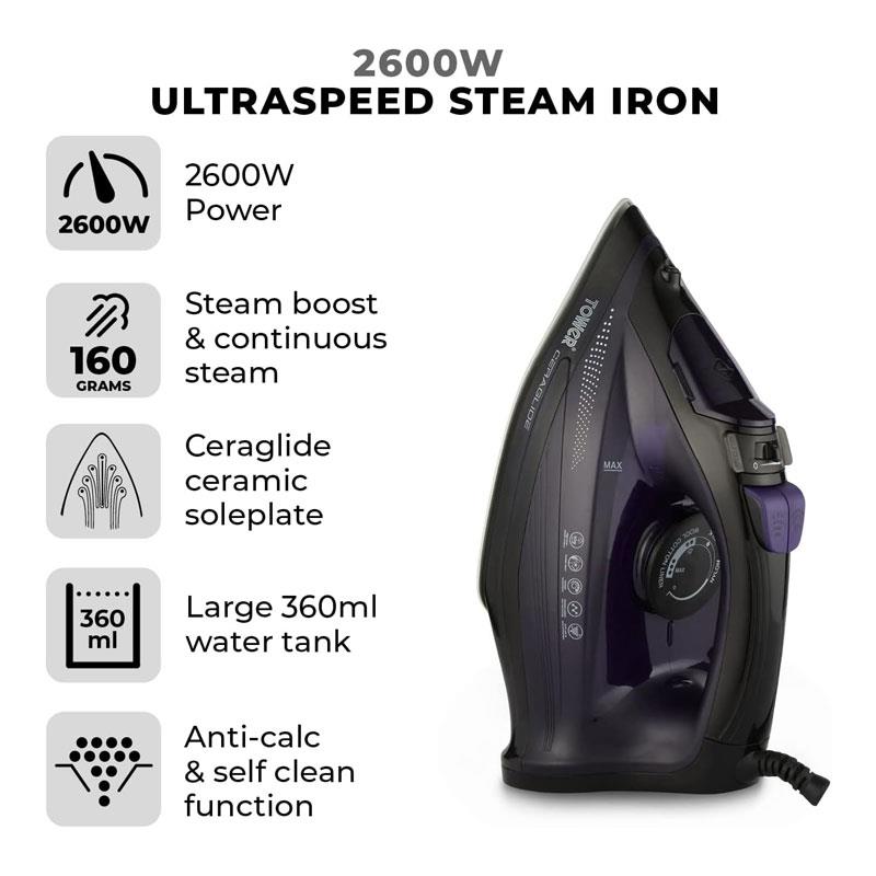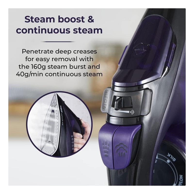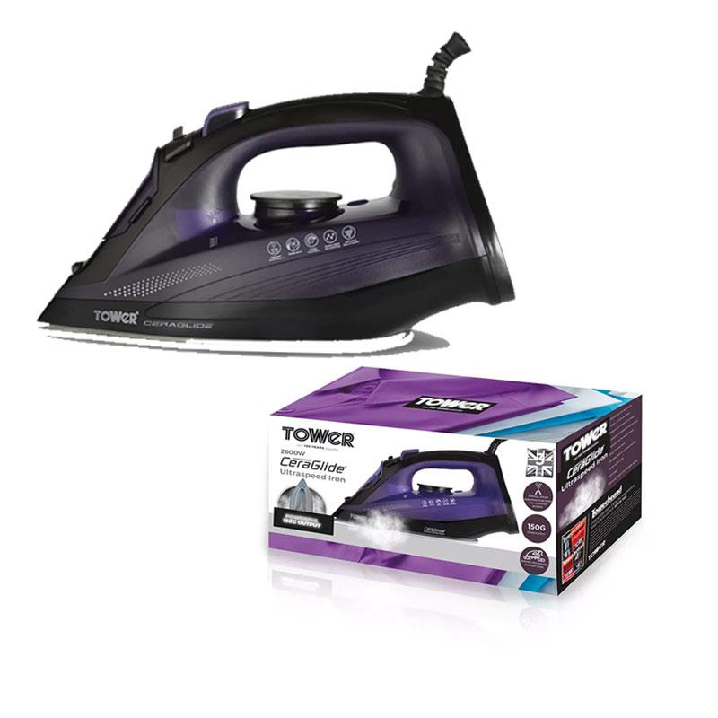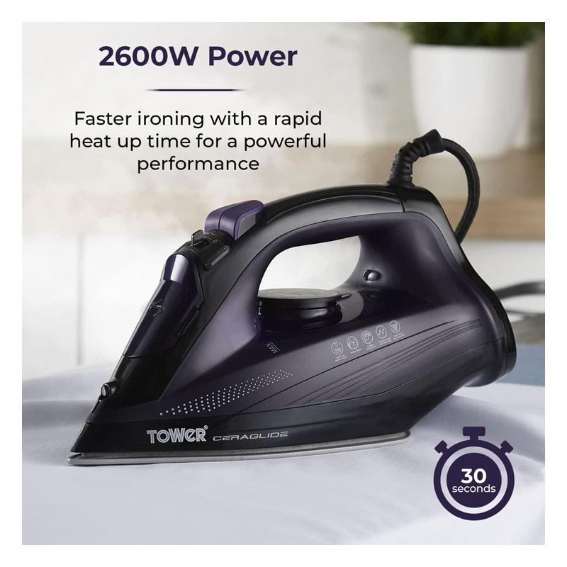 Tower CeraGlide Ultra Speed 2600W Steam Iron – Ceramic Soleplate, Variable Steam, Fast Heat-Up, Purple