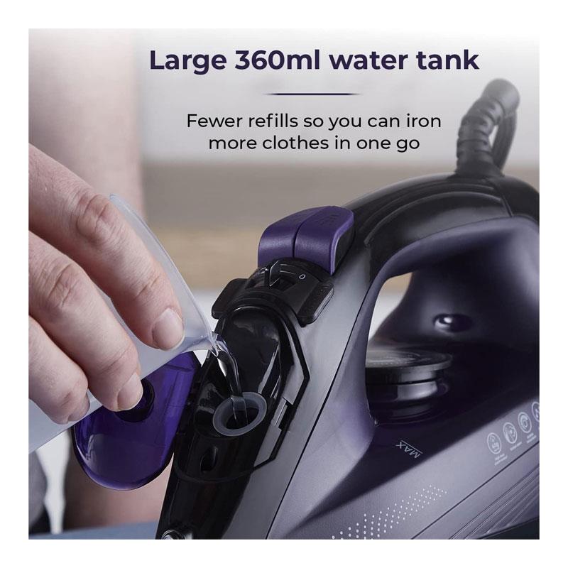 • Large 360ml Water Tank: Fewer refills – iron more clothes in one go and save valuable time.