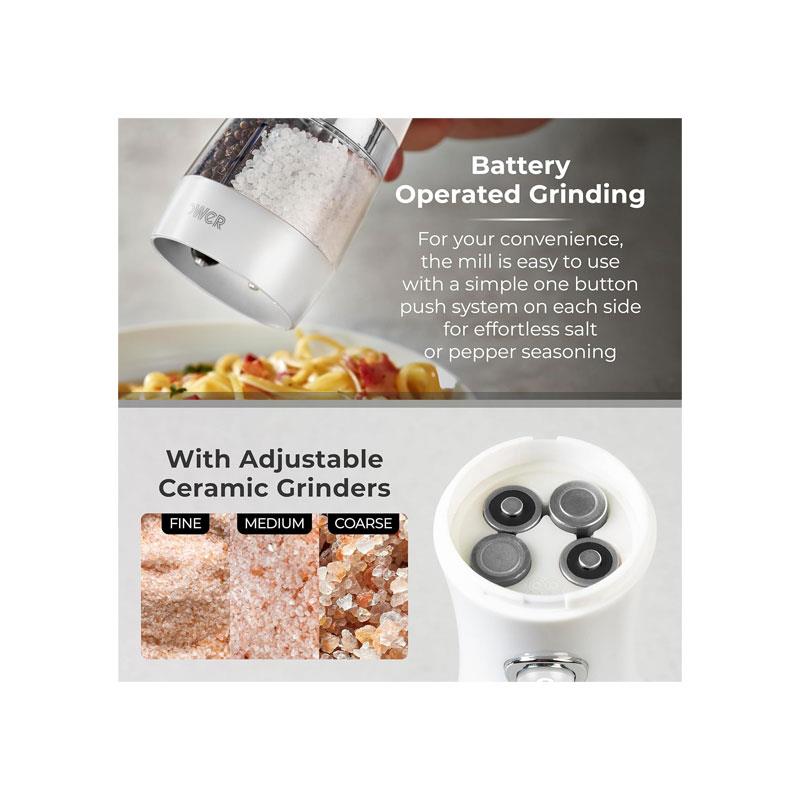 Tower Duo Electric Salt And Pepper Mills Battery Operated Adjustable Ceramic Grinders with ABS Body White/Chrome - Image 3
