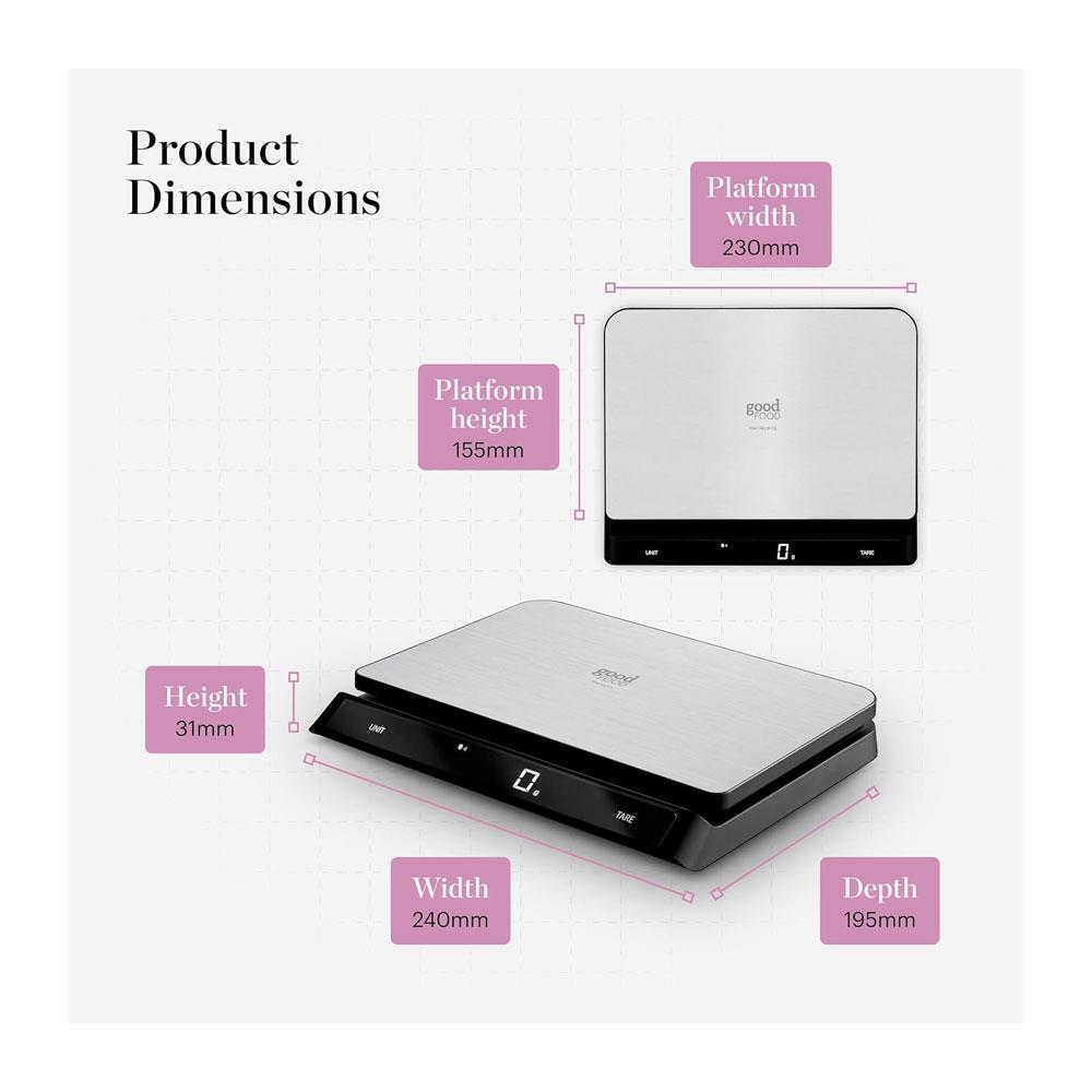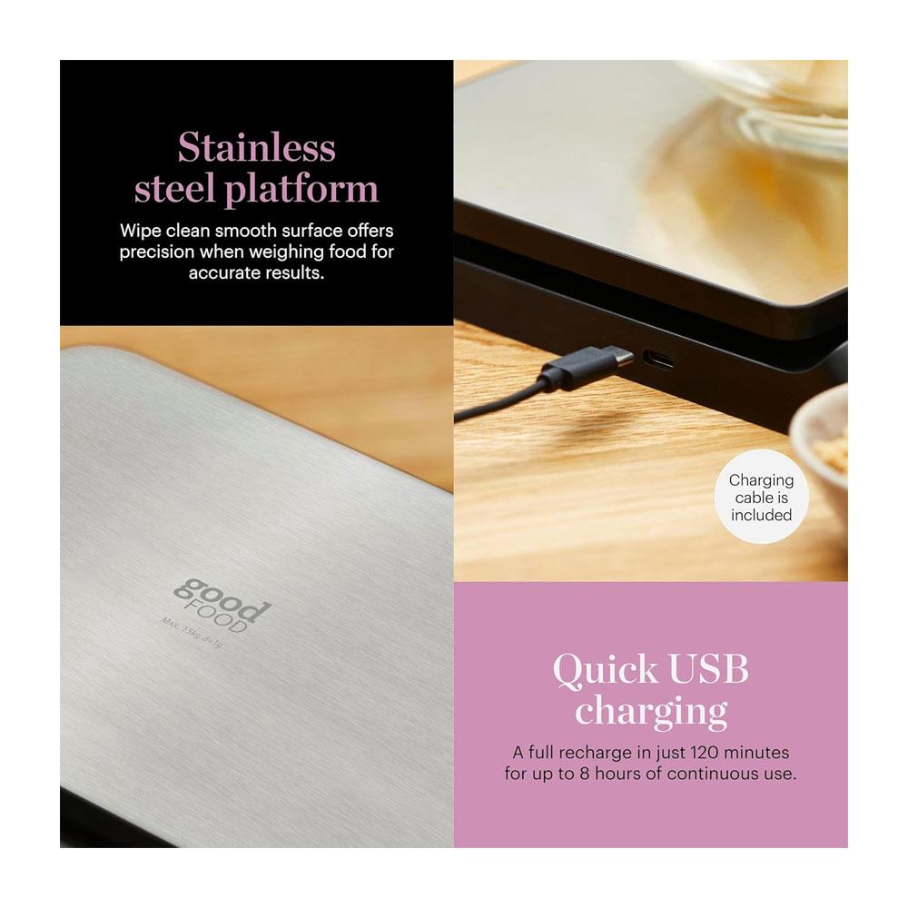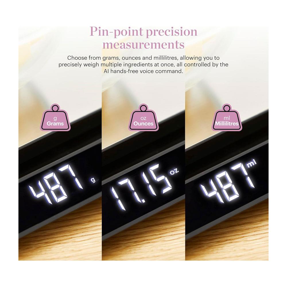 Take the guesswork out of cooking and baking with the Tower Good Food Intelli Kitchen Scale, crafted in partnership with Good Food—a brand trusted by thousands of home chefs. Whether you’re following a complex recipe or meal prepping for the week, this feature-rich scale gives you the power of voice-controlled accuracy, multi-unit measurement, and USB-rechargeable convenience—all in a stylish, hygienic stainless steel design.