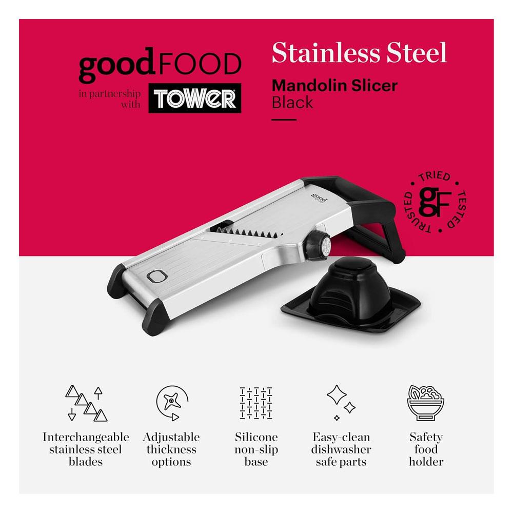 Tower Good Food Mandolin Slicer Durable Precision Stainless Steel Blades - Silver/Black