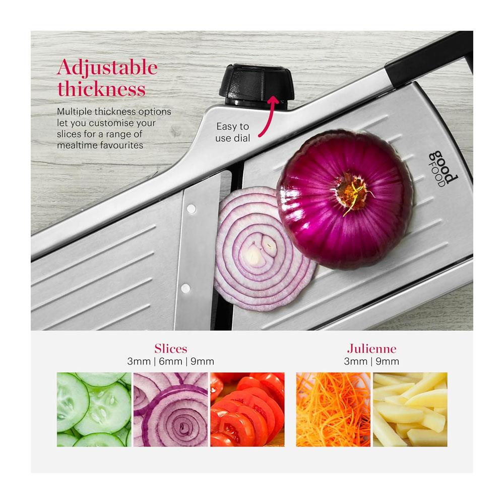 Developed in collaboration with Good Food’s expert Recipe Development Team, this slicer is rigorously tested for performance across 15,000+ recipes. Made from durable, food-safe plastic and stainless steel, it guarantees long-lasting performance with zero toxins.