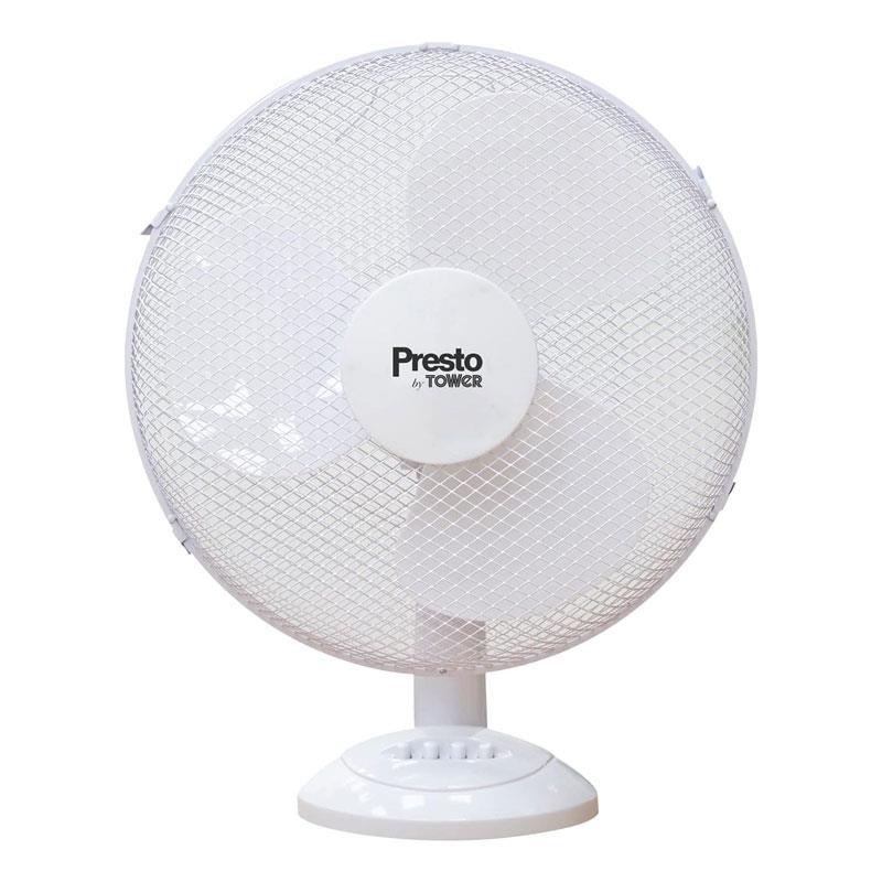 Tower Presto 12 Inch Desk Fan 3 Speed Settings 80° Oscillation 35W - White