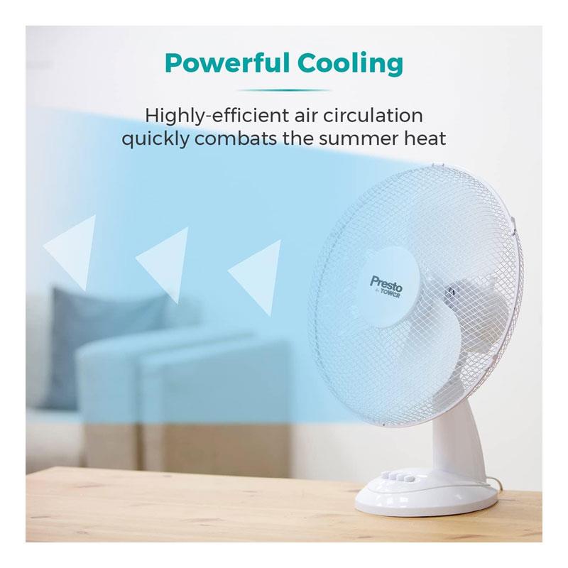 Tower Presto 12 Inch Desk Fan – Powerful 3-Speed Cooling with 80° Oscillation – White
