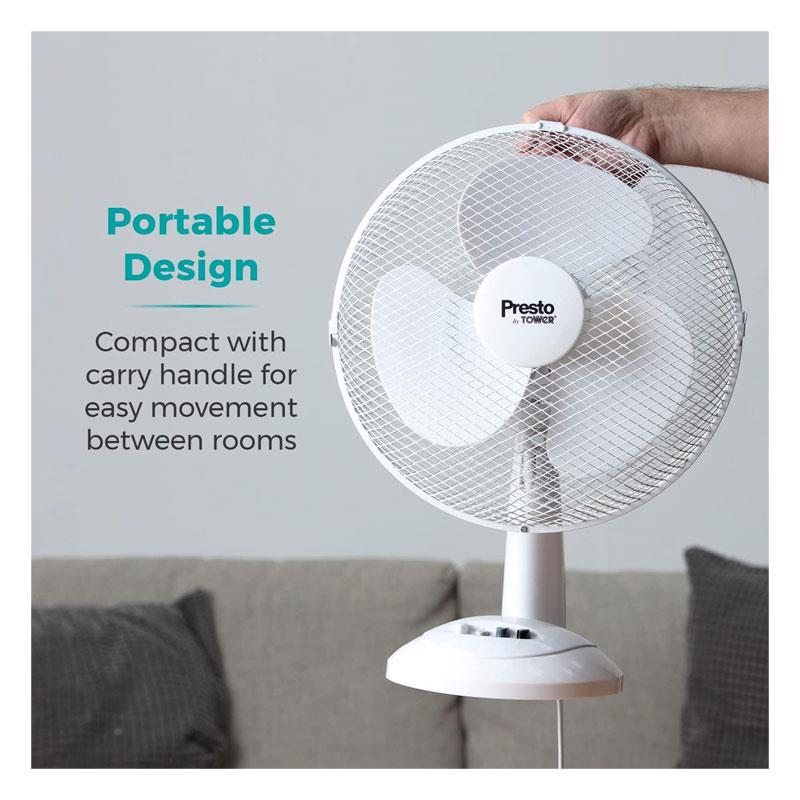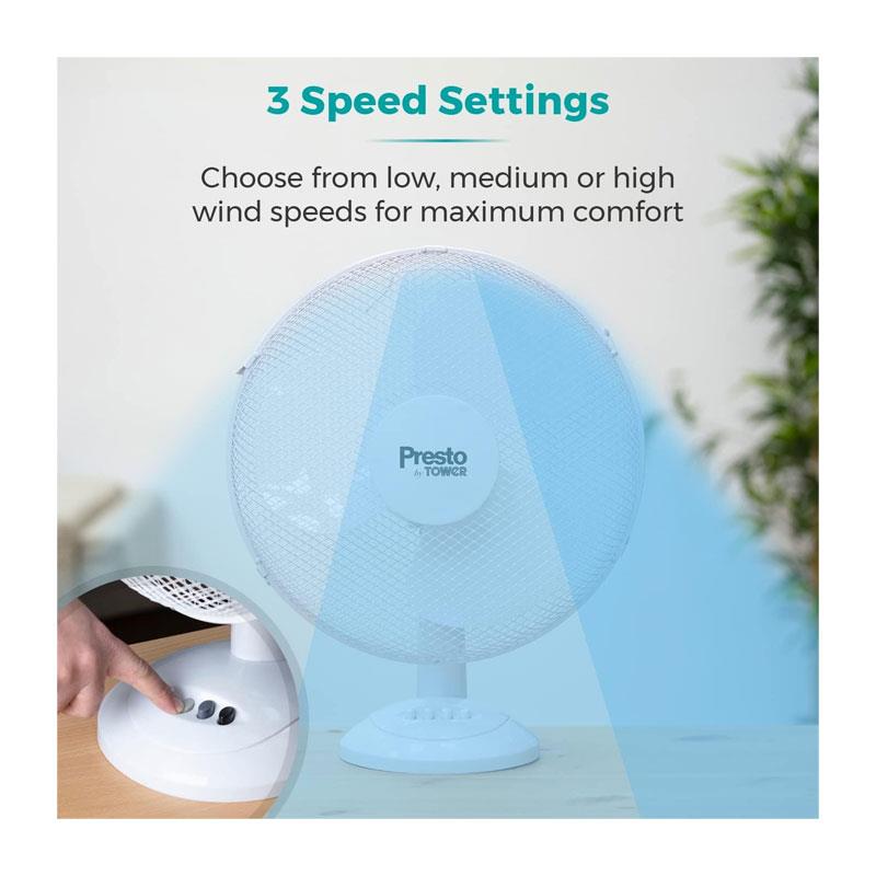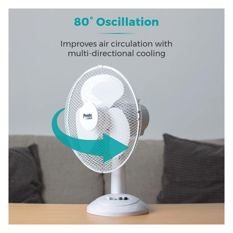 Tower Presto 12 Inch Desk Fan 3 Speed Settings 80° Oscillation 35W - White - Image 5