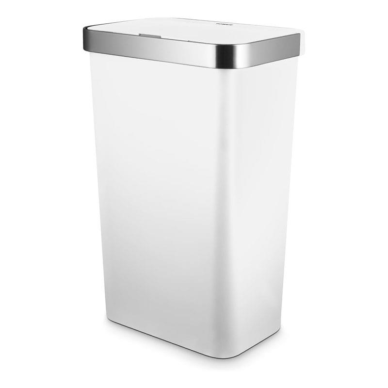Tower Rectangular ABS Sensor Bin 50 Litres Bin Liner Retainer Ring Durable PP Body Stainless Steel Trim White