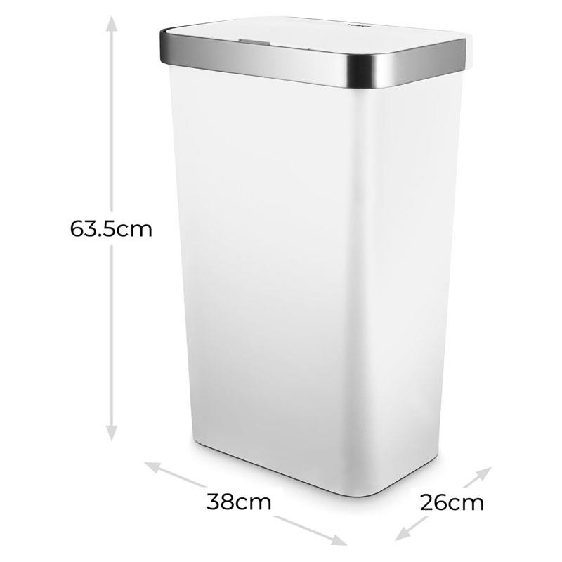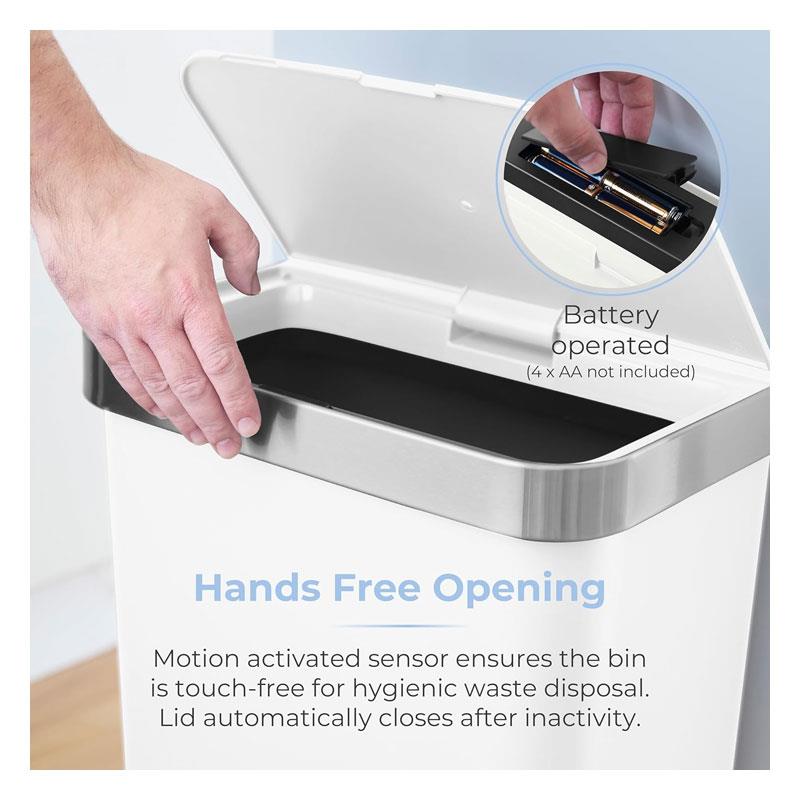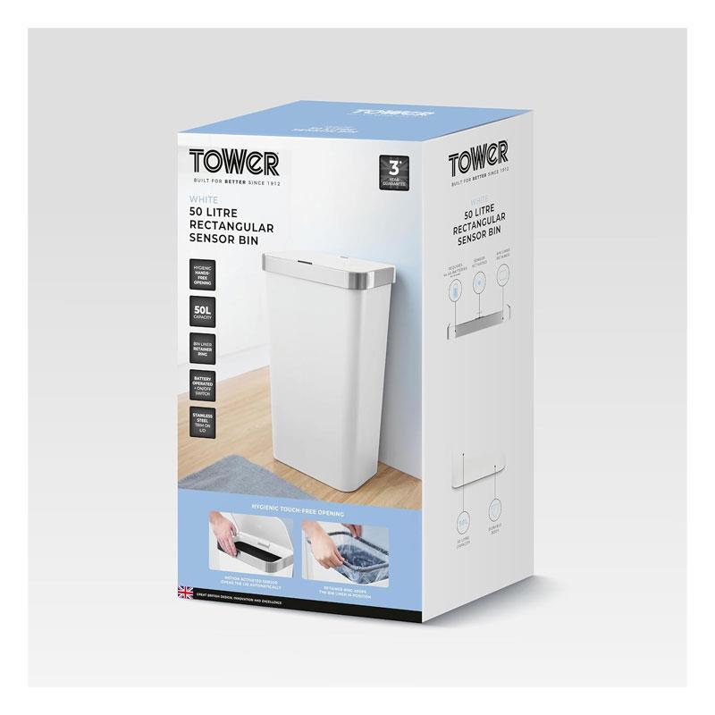Tower Rectangular ABS Sensor Bin 50 Litres Bin Liner Retainer Ring Durable PP Body Stainless Steel Trim White - Image 6
