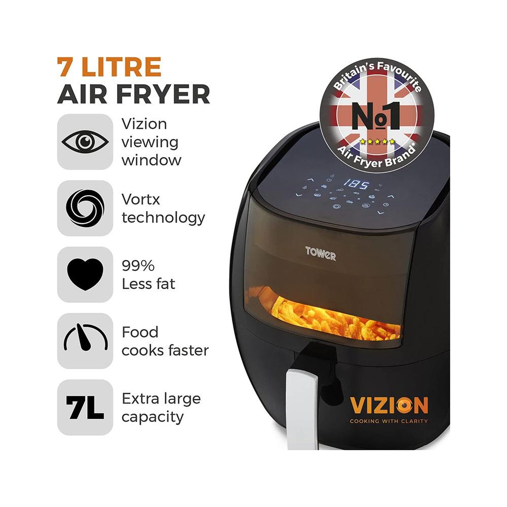 Tower Vortx Vizion Digital Air Fryer With Rapid Air Circulation 1800W 7 Litres - Black - Image 7