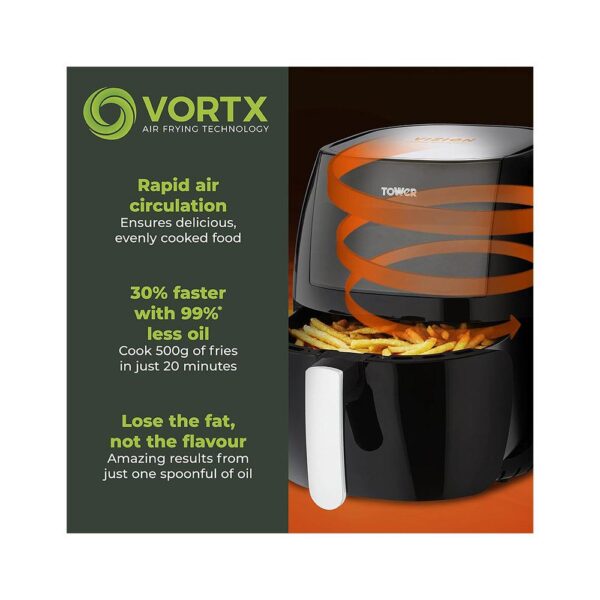 Tower Vortx Vizion Digital Air Fryer With Rapid Air Circulation 1800W 7 Litres - Black - Image 9