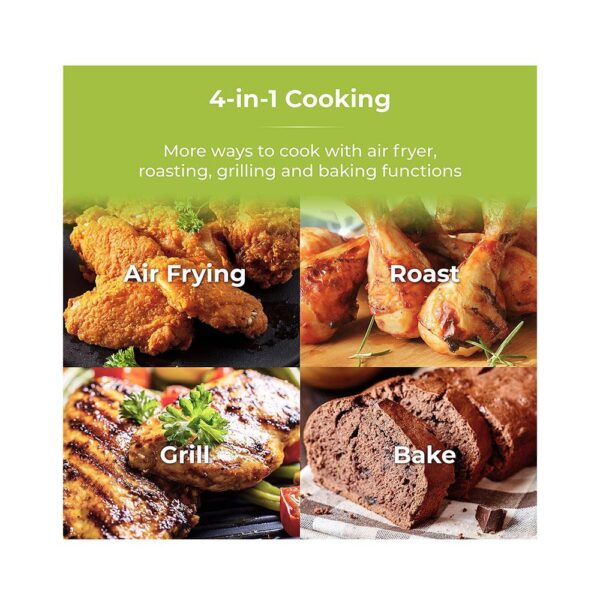 The digital control panel lets you select from 7 pre-set menus for perfectly-cooked fries, ribs, shrimp, cake, chicken drumstick, steak or fish at the touch of a button