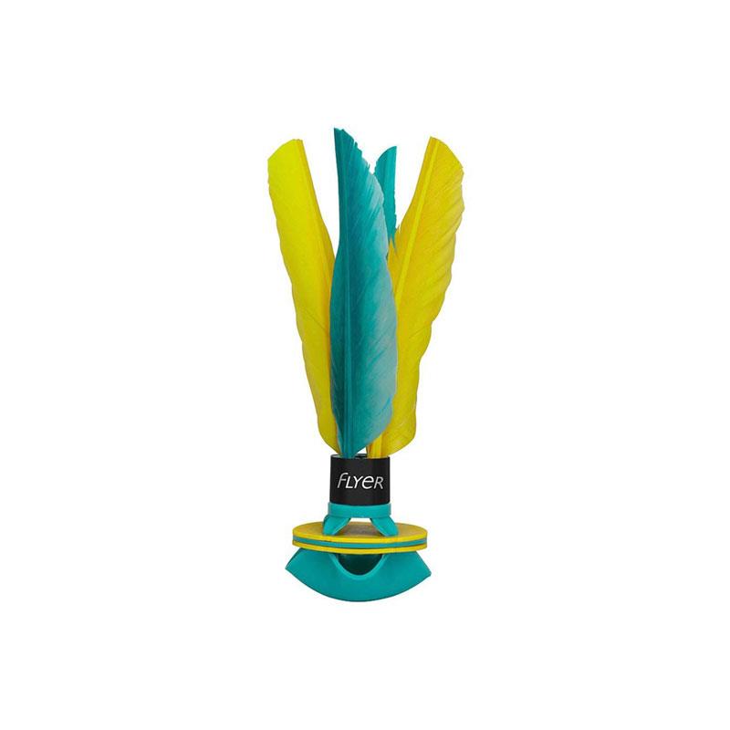 • Soft rubber shuttlecock with feather tail for safe indoor play