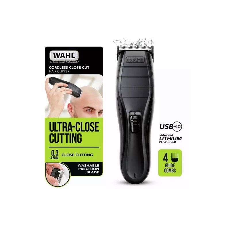 Wahl Cordless Close Cut Hair Clipper Kit Ultra-Close Cutting Blade 3 Attachment Combs Black