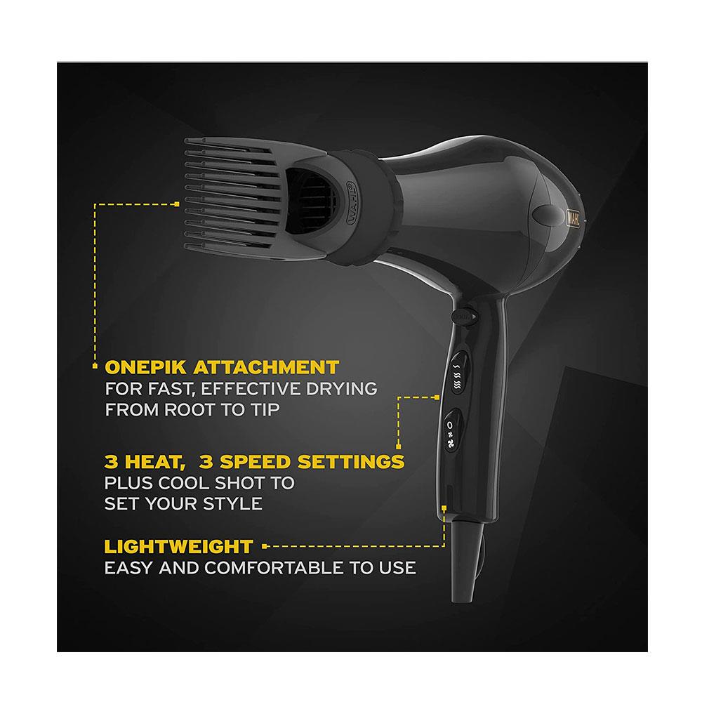 PowerPik 2 Afro Wahl Hair Dryer features a secure fit OnePik attachment with long heat-resistant teeth that assists in directing airflow to the root of the hair and throughout the entire hair length.
