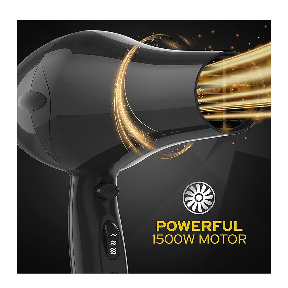 This dryer boasts 1500W of power with three heat & 2-speed settings, as well as a cold shot to set your style; giving you maximum styling control.