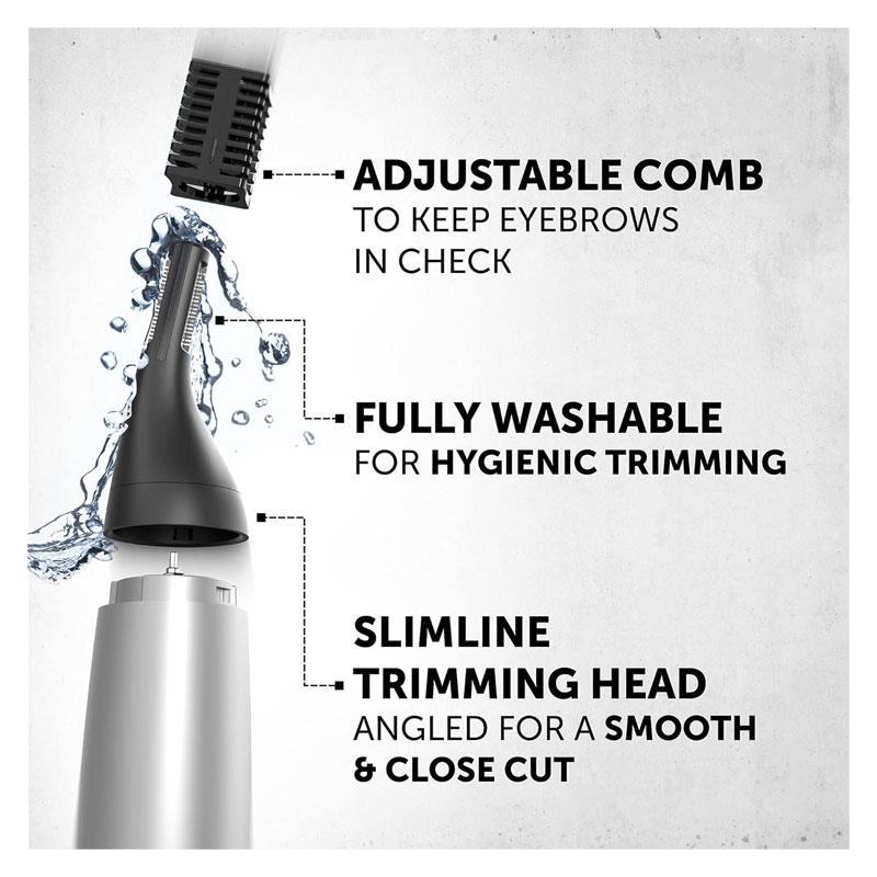 Wahl Precision Ear Nose And Eyebrow Trimmer Vertical Trimming Head Fully Washable 5 Trimming Lengths Silver - Image 5