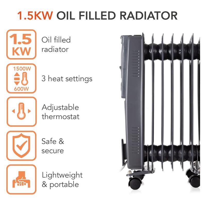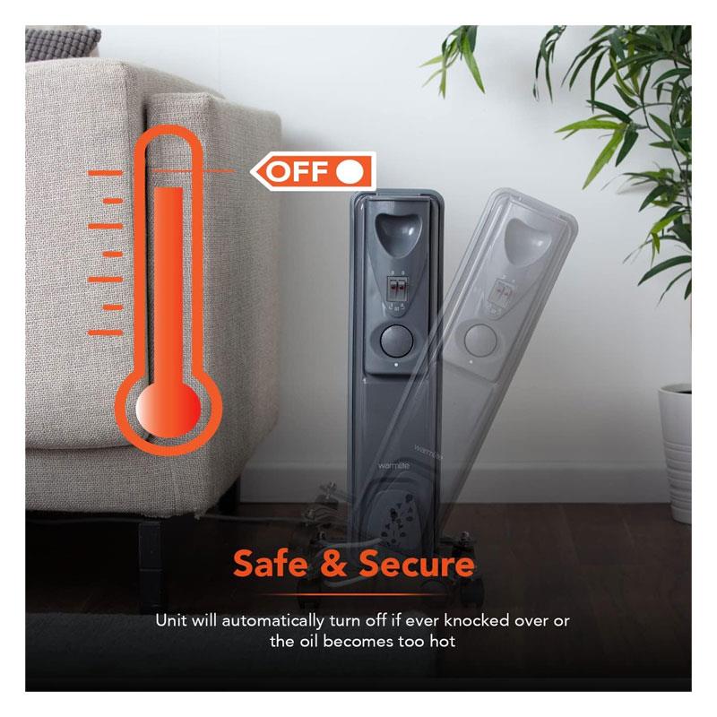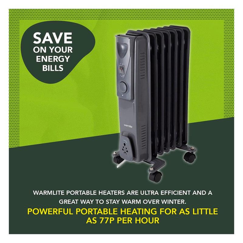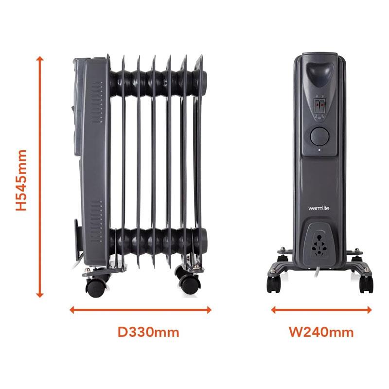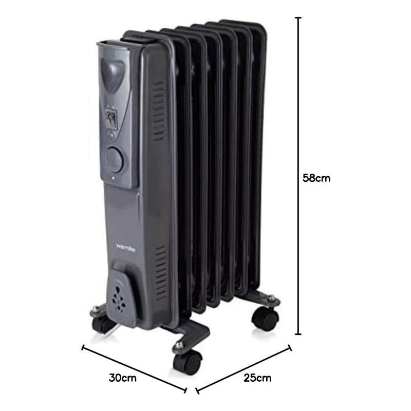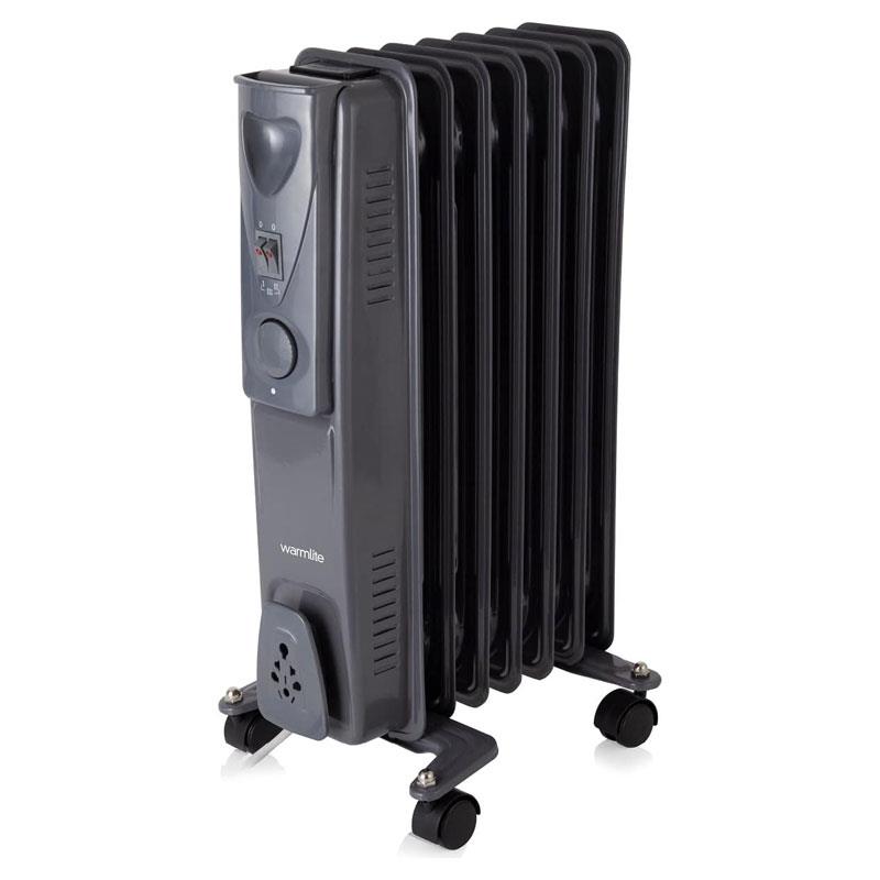 Warmlite 7 Fin 1500W Oil Filled Radiator with Adjustable Thermostat & Overheat Protection – Portable Electric Heater in Dark Titanium | Energy Efficient Home Heating UK