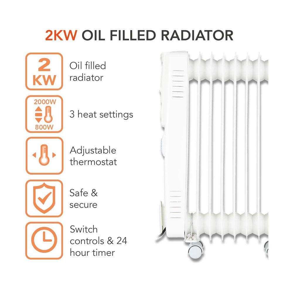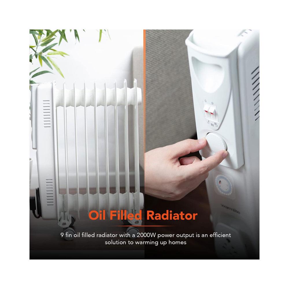 Warmlite 9 Fin Oil Filled Radiator 2000W With 3 Heat Settings & 24hr Timer – White
