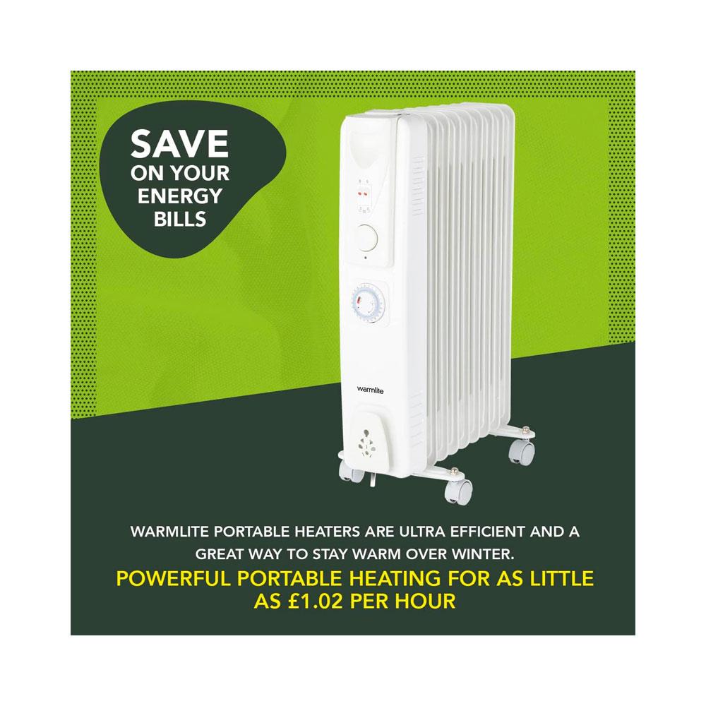 Warmlite 9 Fin Oil Filled Radiator 2000W With 3 Heat Settings & 24hr Timer - White - Image 9