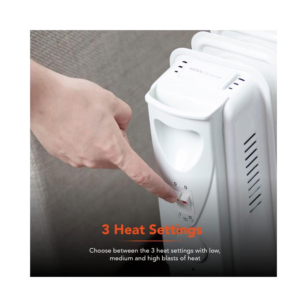 Warmlite 9 Fin Oil Filled Radiator 2000W With 3 Heat Settings & 24hr Timer - White - Image 4