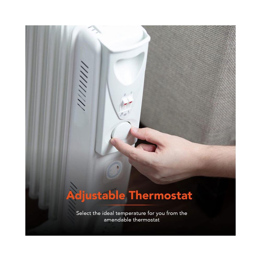 Stay warm and cozy in any room with the Warmlite 9 Fin Oil Filled Radiator. Designed to deliver efficient heating, this 2000W radiator offers 3 heat settings—800W, 1000W, and 2000W—allowing you to choose the ideal warmth for your home or office. Featuring an adjustable thermostat for precise temperature control and a maximum heat output of 105°C, this radiator ensures a comfortable environment no matter the climate.
