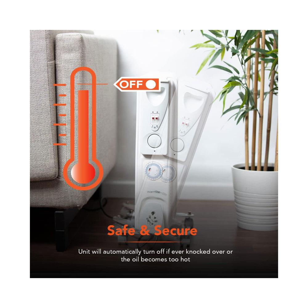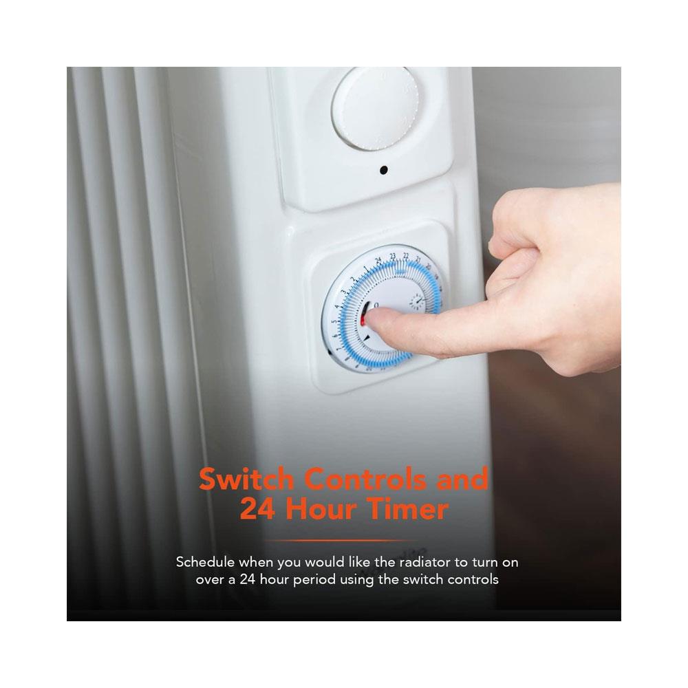 Warmlite 9 Fin Oil Filled Radiator 2000W With 3 Heat Settings & 24hr Timer - White - Image 6