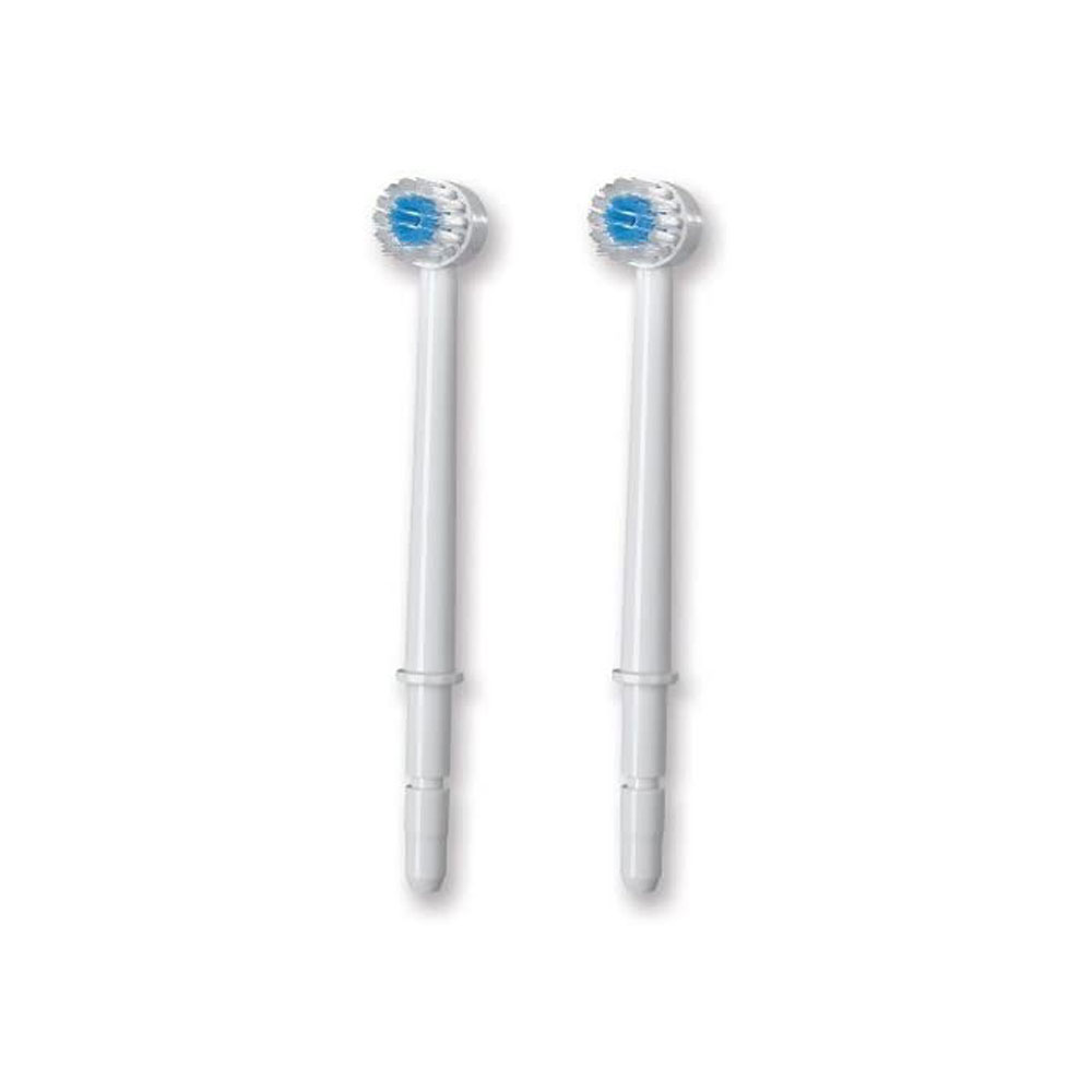 Replacement Toothbrush Tips x2, for the WP450, WP250, WP100 and WP900. The Toothbrush Tip is similar to a manual toothbrush (it is not an electric or sonic toothbrush). It attaches to the Water Flosser handle and allows you to manually brush your teeth as you water floss. Use with or without toothpaste. Place the Toothbrush Tip in the mouth with the brush head on the tooth at the gumline. Using light pressure as you water floss, massage the brush back and forth with very short strokes, similar to using a manual toothbrush.