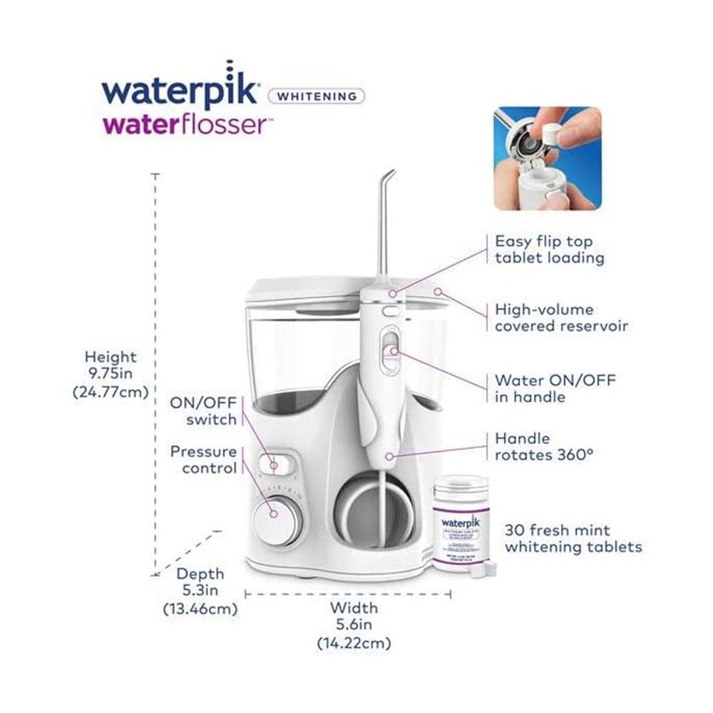 Waterpik Whitening Water Flosser With 30 Teeth Whitening Refill Tablets Bottle – White